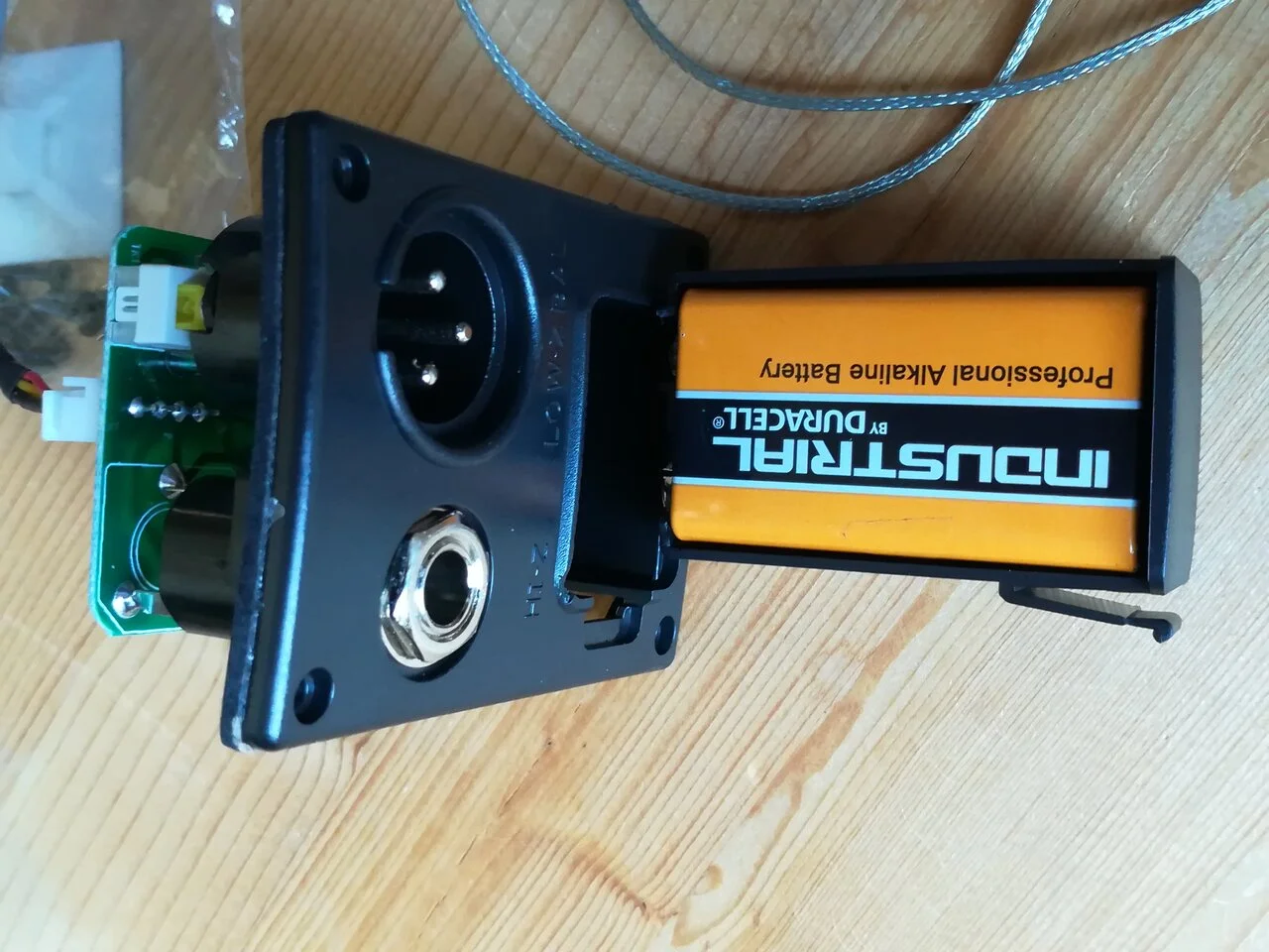 Das Teil mit dem Batteriefach, der 6,3mm Klinkenbuchse und dem XLR-Stecker war von der Größe her nahezu baugleich und konnte eins zu eins ausgetauscht und verschraubt werden.