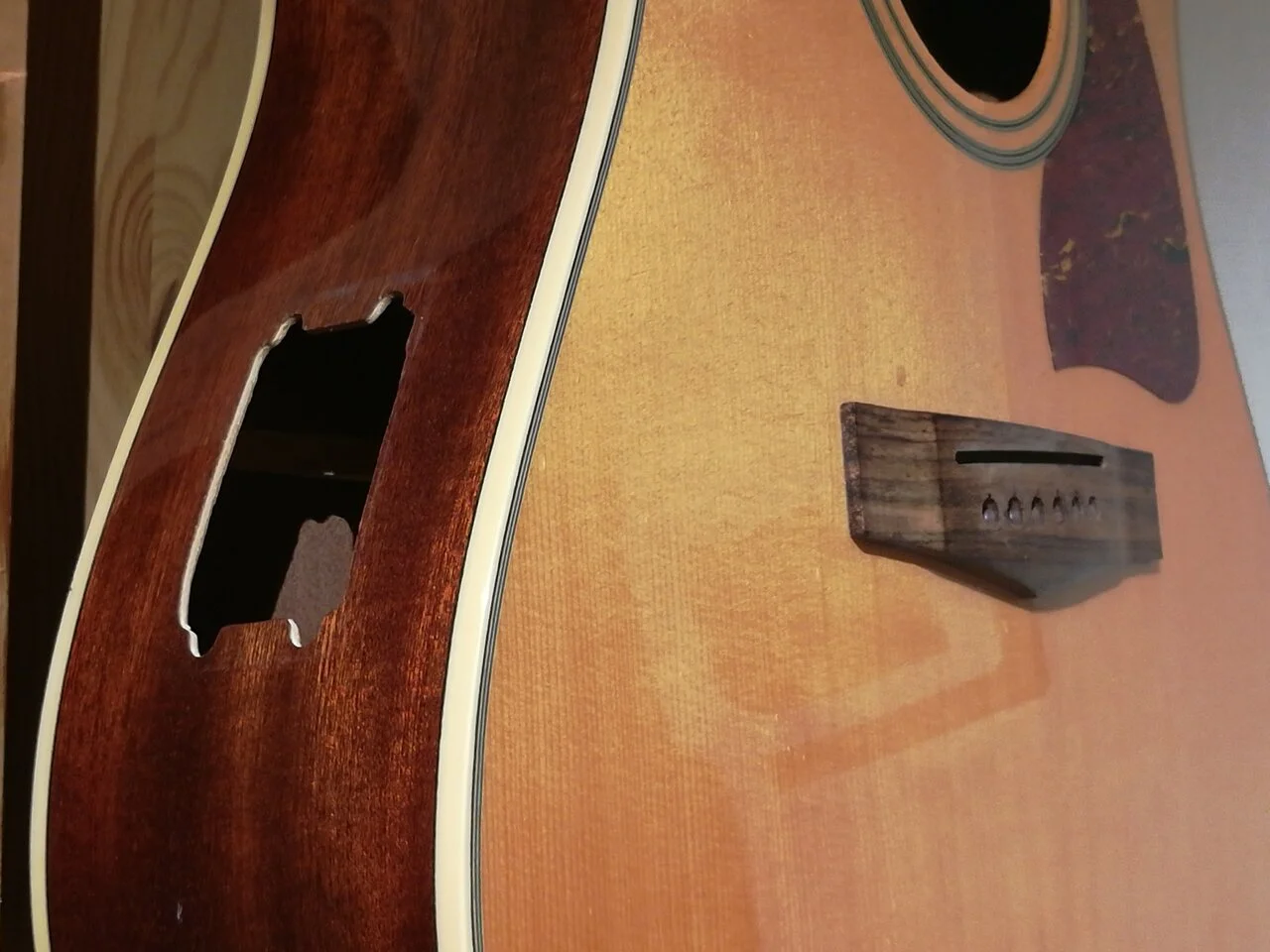 Low-Cost-Reparatur des "Zargenradios" einer Ibanez Artwood AW10ECE-NT mit Belcat Prener PM