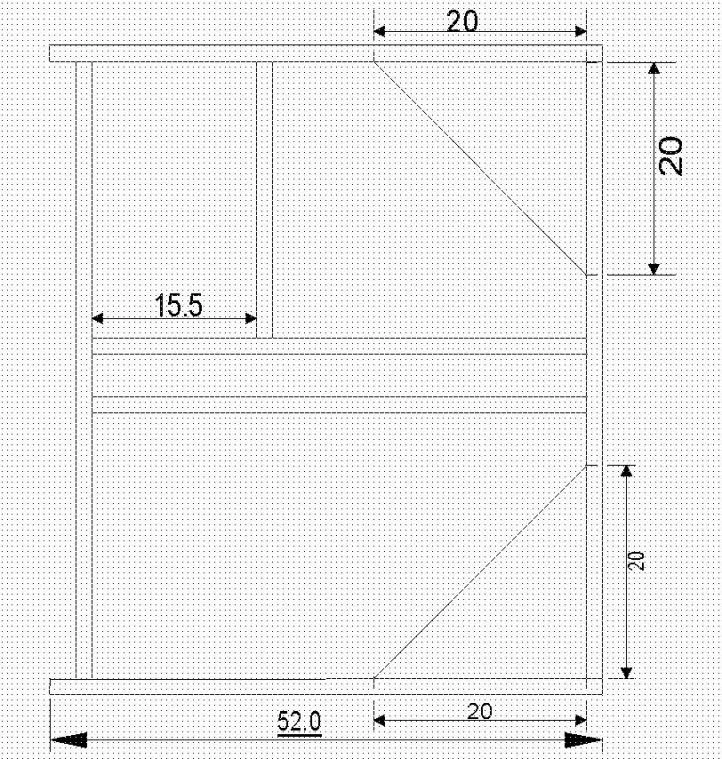 aus dem 200x200 stück werden 2 dreiecke gesägt, diese mittig oben und unten angebracht