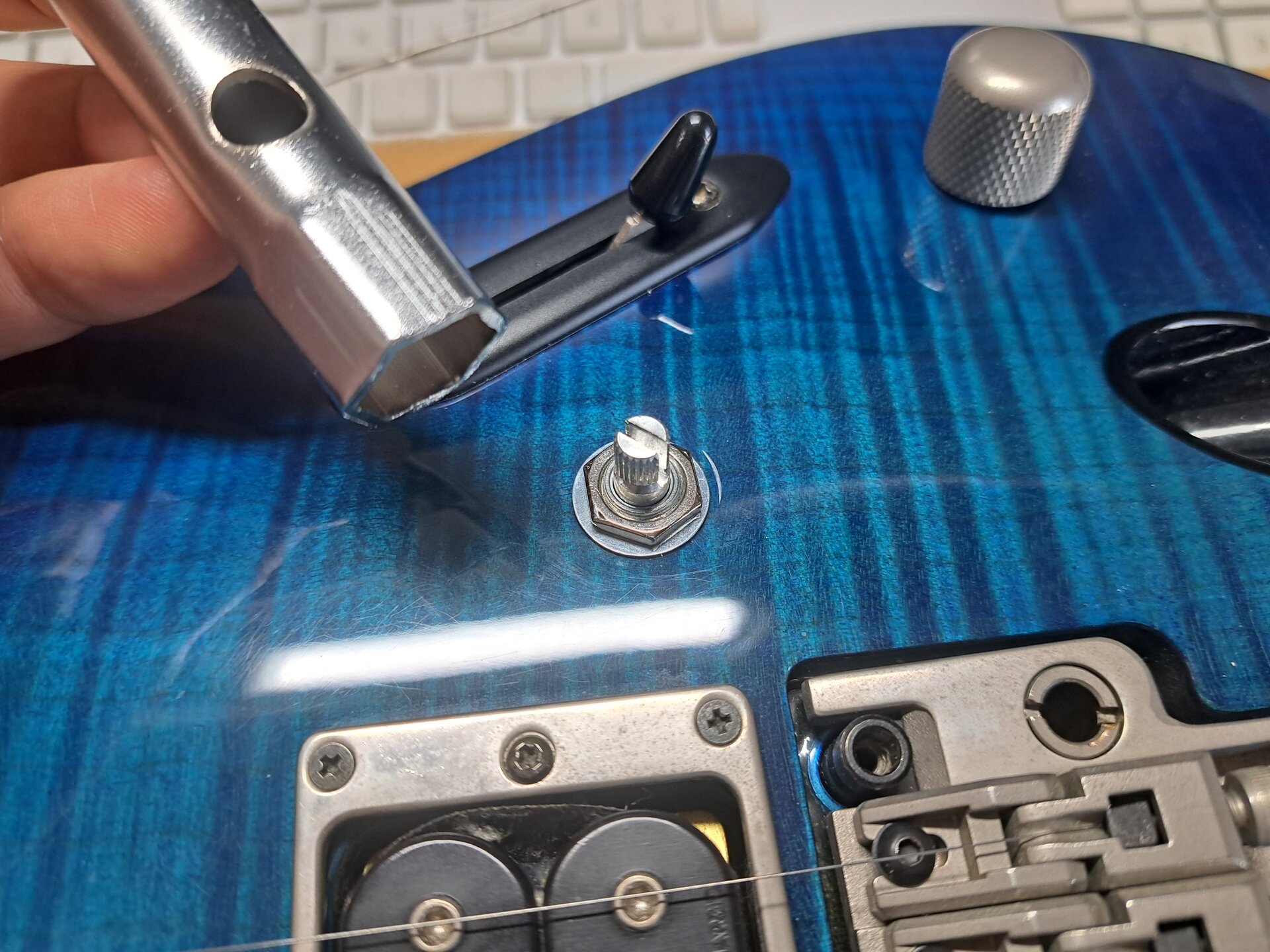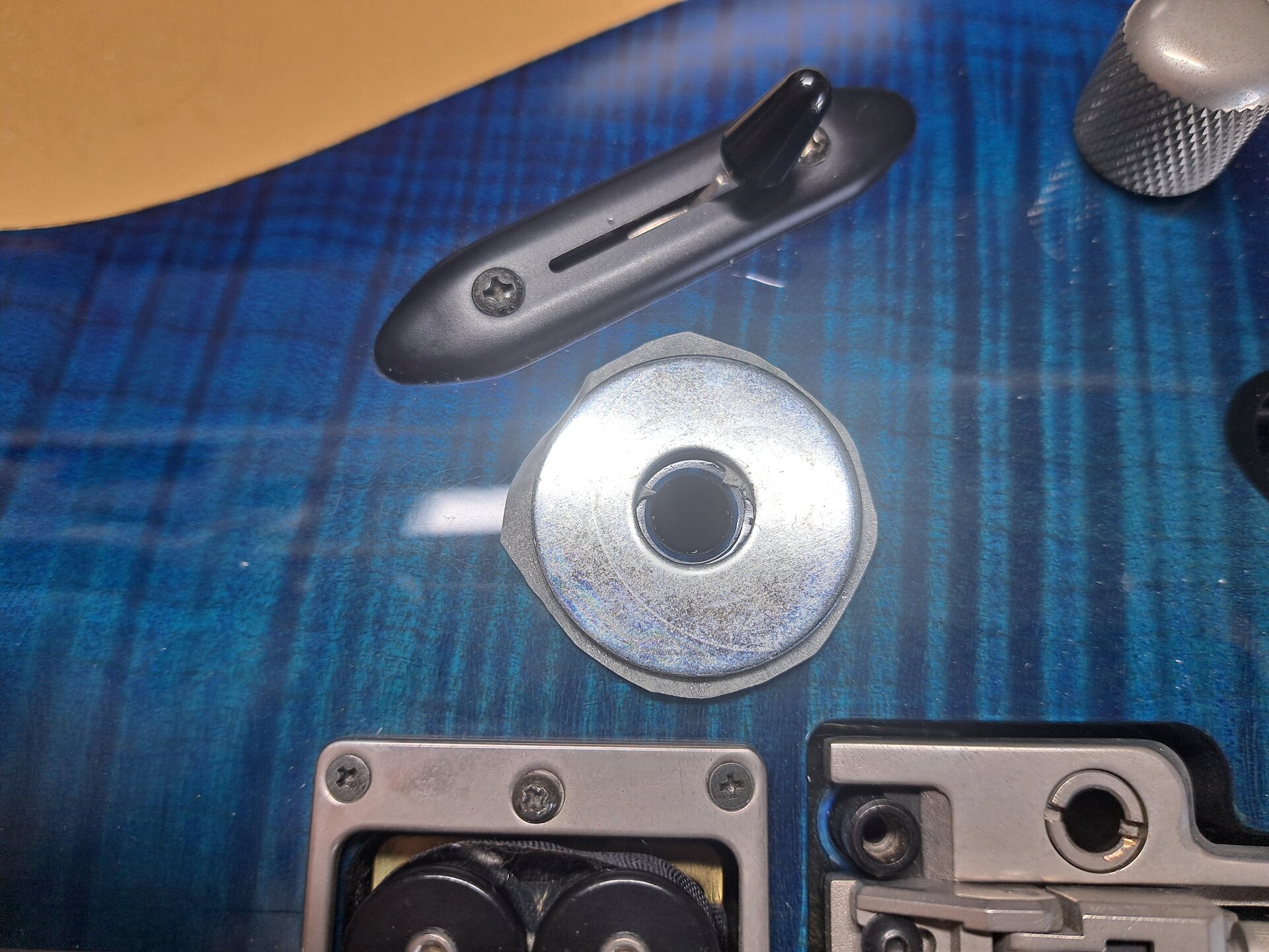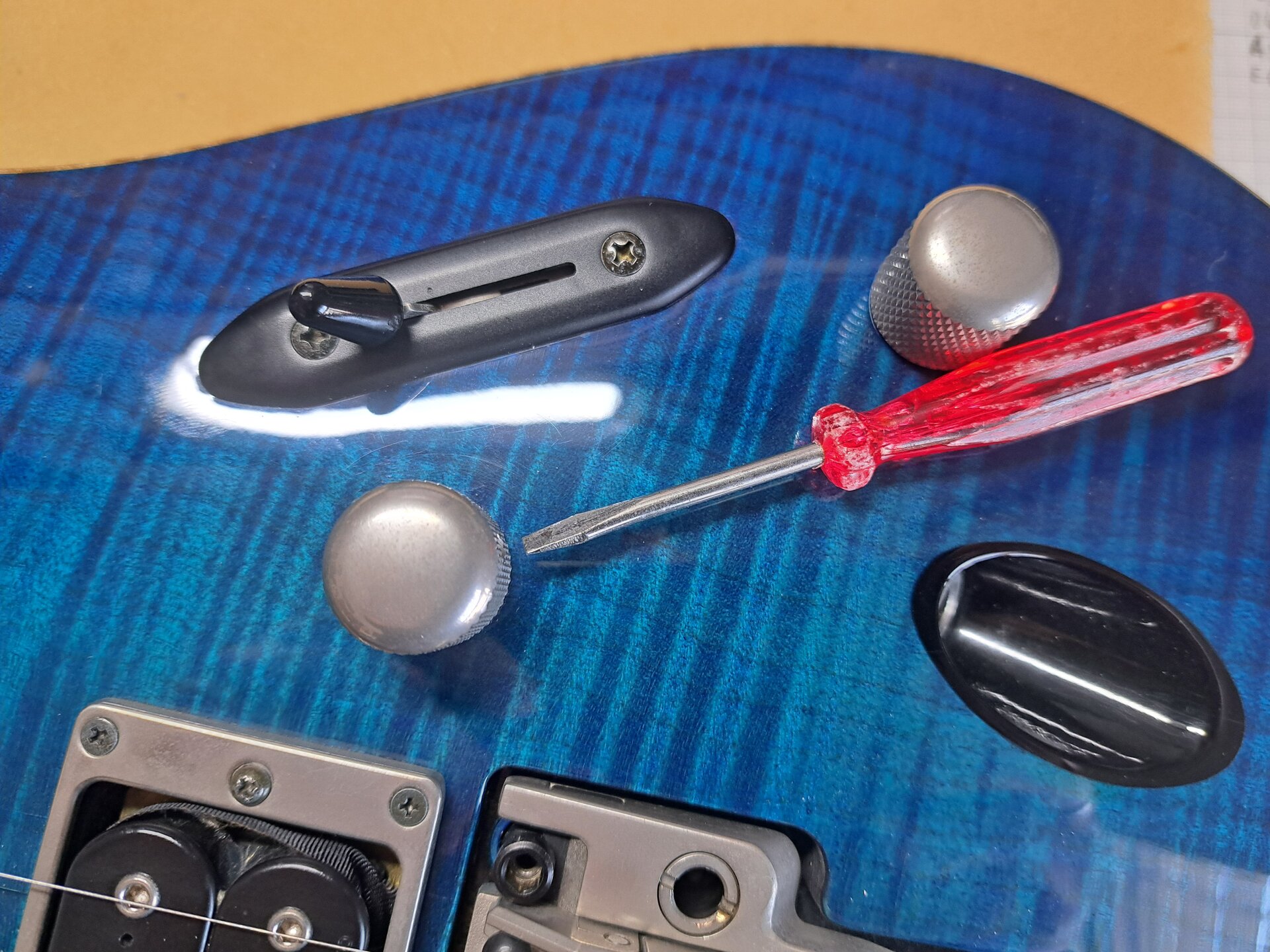 Das Volume-Poti meiner vergangenes Jahr erworbenen, gebrauchten Ibanez Prestige S2620FMTB von 2002 war dermaßen schwergängig, dass es mir schiergar den Spaß an der Gitarre komplett verdorben hätte. Auch nach einer Behandlung mit Tuner-Spray, welches ja eine leicht schmierende Wirkung hat, sowie (nahezu) stundenlangem, stupiden Hin- und Herdrehen stellte sich partout kein "broken in"-Gefühl ein. Deshalb fasste ich heute den Beschluss, dem ein Ende zu setzen!