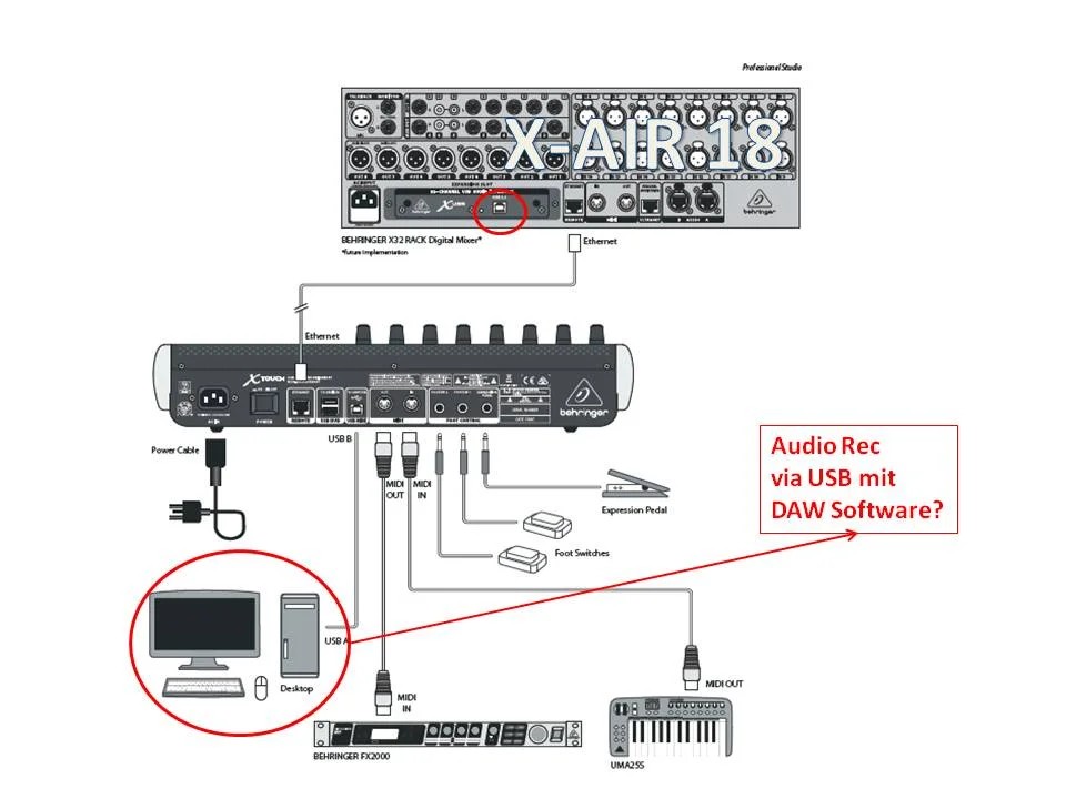 Hintergrund: Ich weiß dass ich am X-Air über den USB-B Port des X-Air direkt mit einer DAW per USB recorden kann.