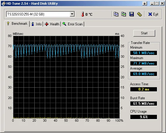 Als Test für den Datendurchsatz habe ich das Freeware-Tool "HD Tune portable" verwendet:
