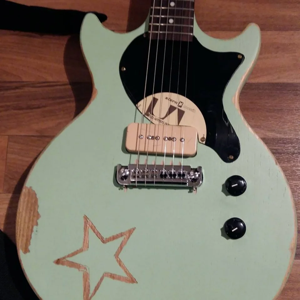 Mit E-Gitarre und AMP am Lagerfeuer. RespektHier ist mein Baby mit P90 im Jazzmaster Format, genießt die letzten Herbstsonnenstrahlen 🙂