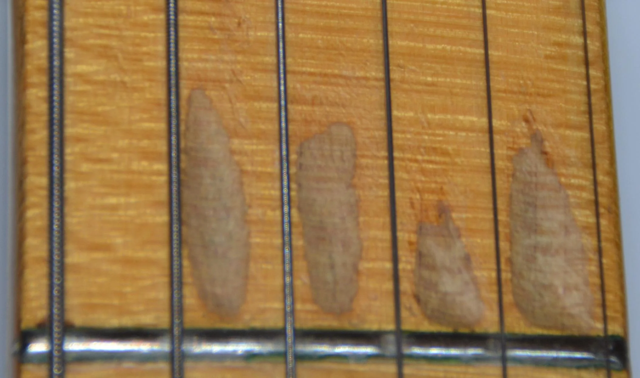 ... und der Blick an den Tone Potis vorbei zum Volume Poti, links der 5 Weg-Schalter