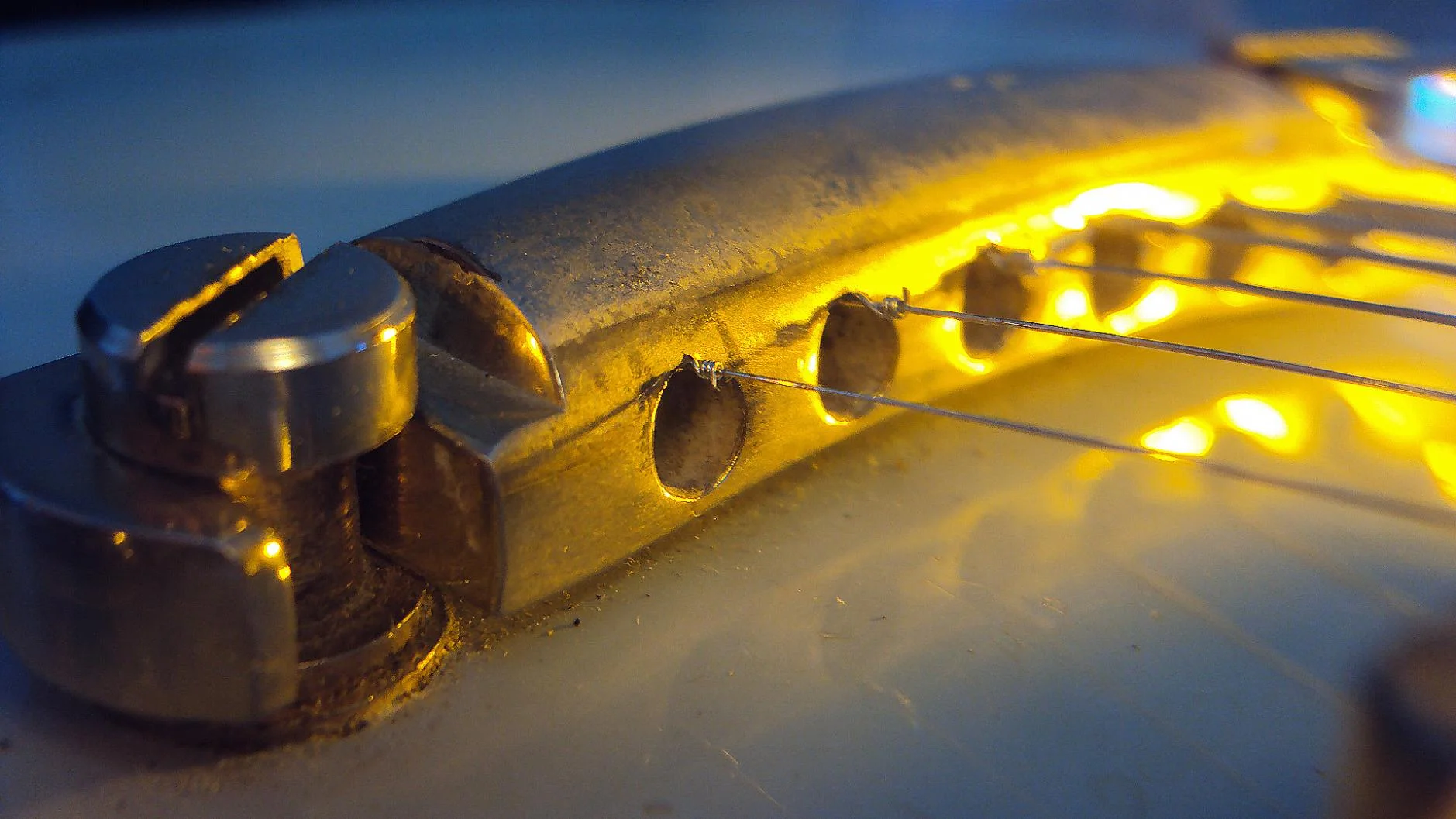 (an denen man sich auch nicht die Finger verletzen kann weil das überstehende Ende der Saite in der Mechanik verschwindet):