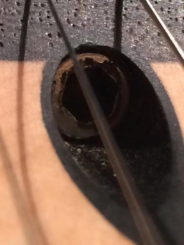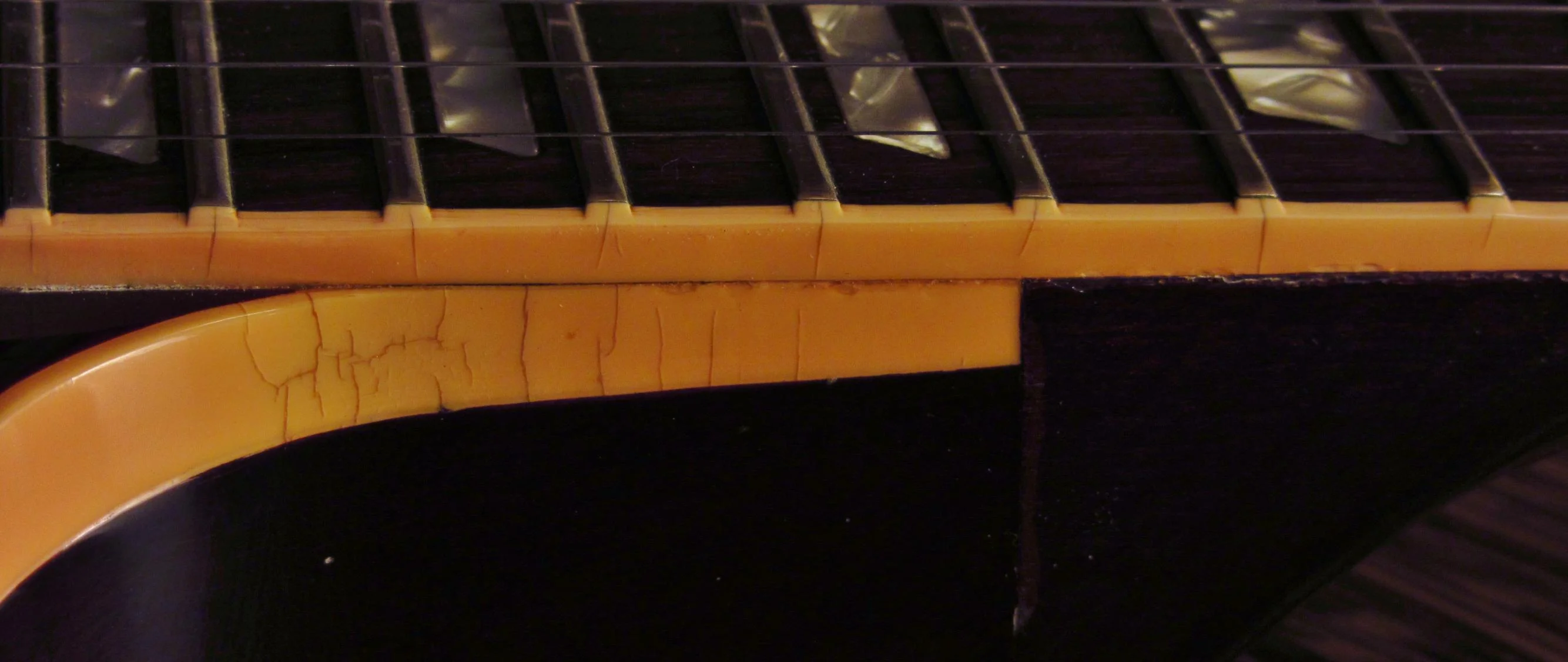 Wurde schon mal abgerichtet wie man es an den Spuren der Feile im Griffbrett sieht