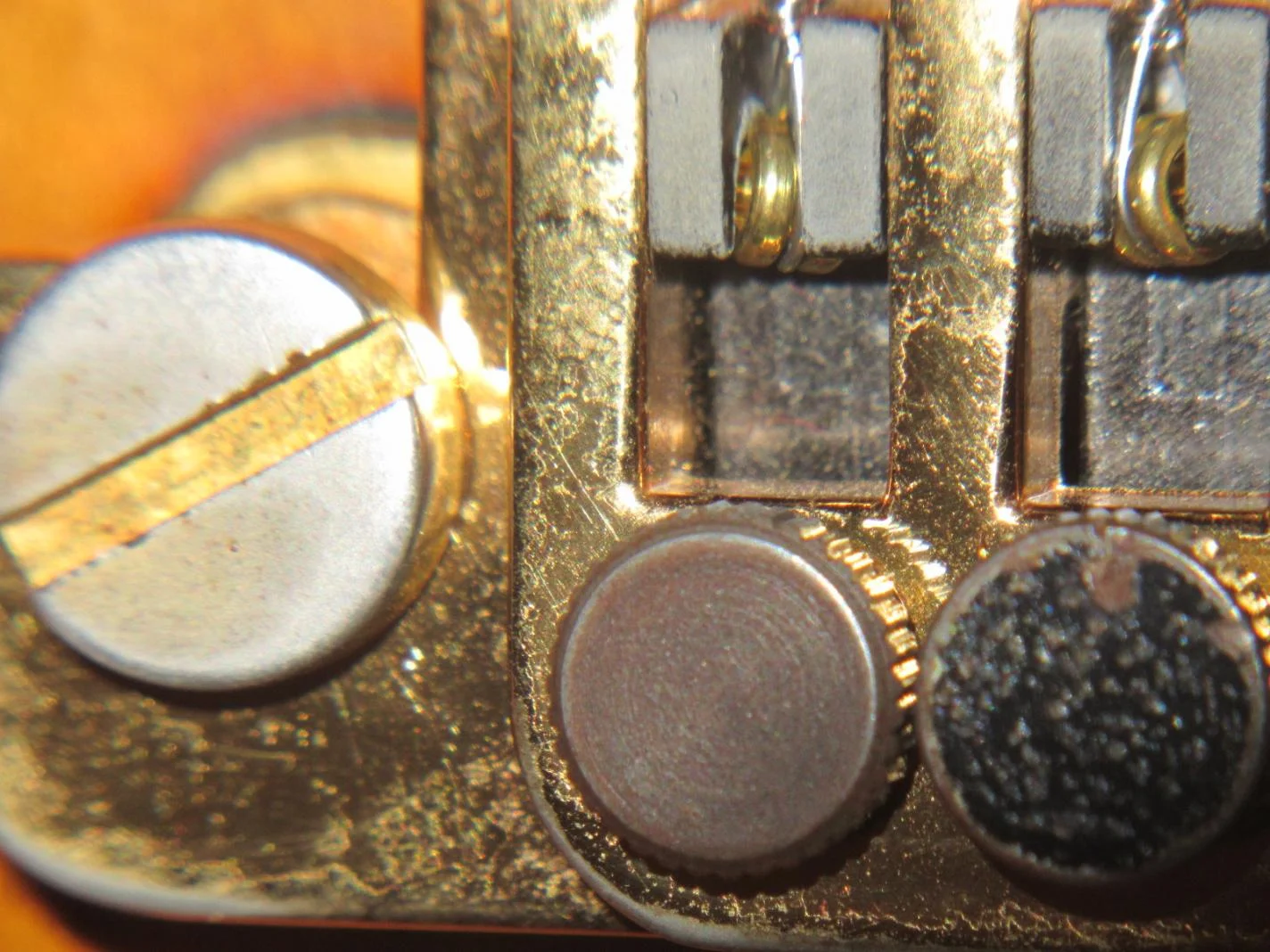 .Ich besitze überhaupt nur eine Lupe, und das zufällig, weil wir solche als Werbegeschenke erhielten. D.h., die Lupe auf dem PU-Switch ist genau die, mit der ich die Bridge und den PU und auch nachfolgend die Feinstimmer und das Typenschild aufgenommen habe: