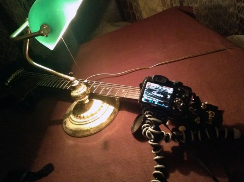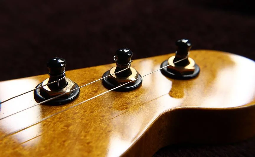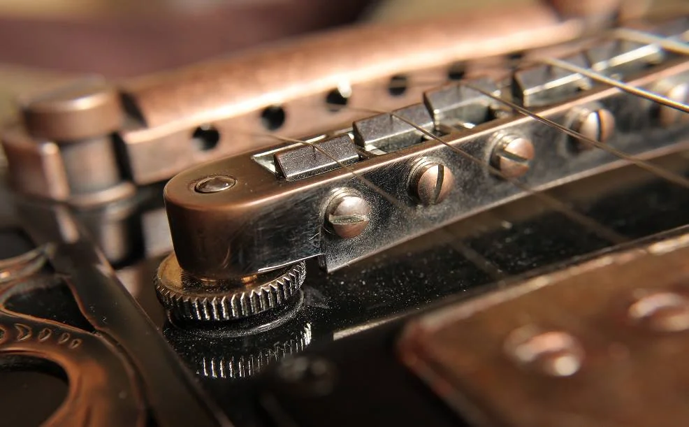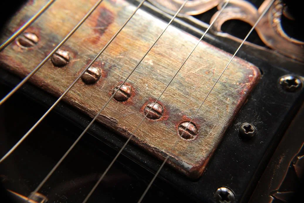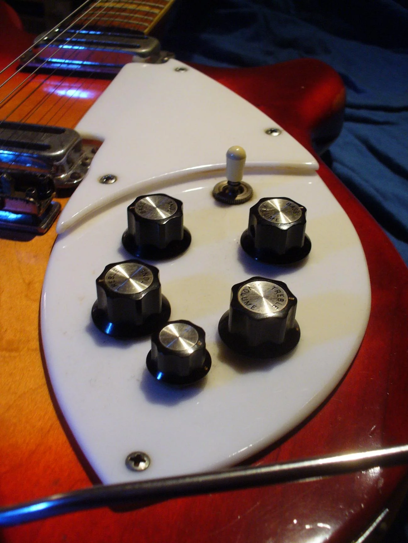 Chrissi, was hast Du für eine Kamera (und was für ein Objektiv für das erste Bild)?Die Saiten meiner Mockingbird, Flying V Details und Tele Headstock.