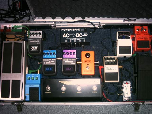 ich habe vor mir demnächst ein Effekt-board zu basteln. Ich werde mir einen Alu-Koffer aus dem Baumarkt kaufen (10 Euro ca.) und hinten die Schaniere preparieren, sodass man den Deckel abnehmen kann und auch wieder zusammenklappen.