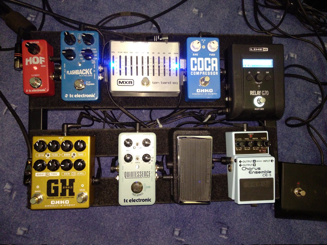 Ein weiterer wichtiger Punkt bei sowas - insbesondere bei Pedalboards mit einzelnen Effektpedalen - ist m.M.n. die Stromversorgung. Entweder nur 9V Batterien oder ein PSU mit vollständig voneinander isolierten DC-Ausgängen. Mit billigen Netzteilen habe ich so meine negativen Erfahrungen gemacht.