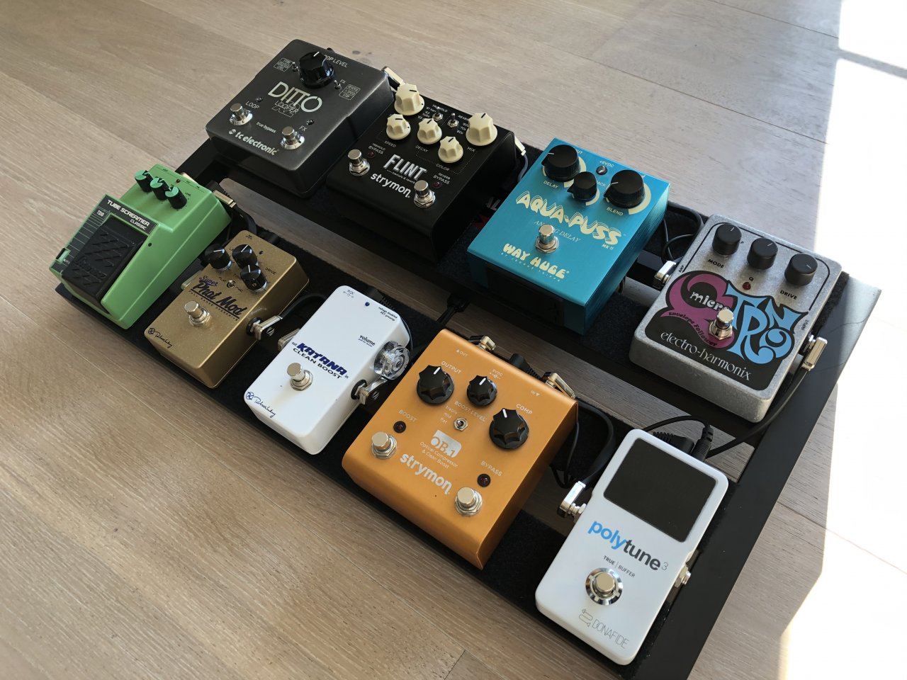 Aktualisierung....der Palmer Pocket Flanger wurde durch den TC Thunderstorm ersetzt (wegen defekt). Und das 4. George Dennis Pedal ist auch fest verbaut. Tremolo/Volumenpedal.