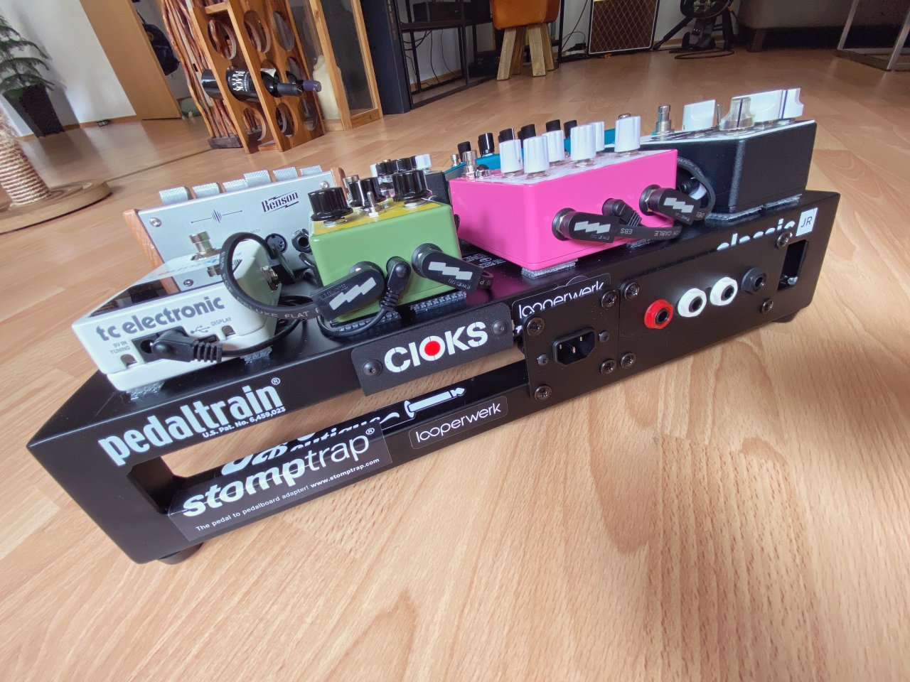 Aber auch nur wenn man es dicht an dicht stellt... was unter Umstände - je nach Flossengröße und Geschicklichkeit - daneben gehen kann. Daher lieber etwas Luft lassen auf dem Pedalboard, was dann auch einem das gute Gefühl der Mäßigung und luxuriöse Platzverhältnisse vermittel. Man fühlt sich dann so beschwingt, dass man gleich ein neues Pedal bestellen könnte...