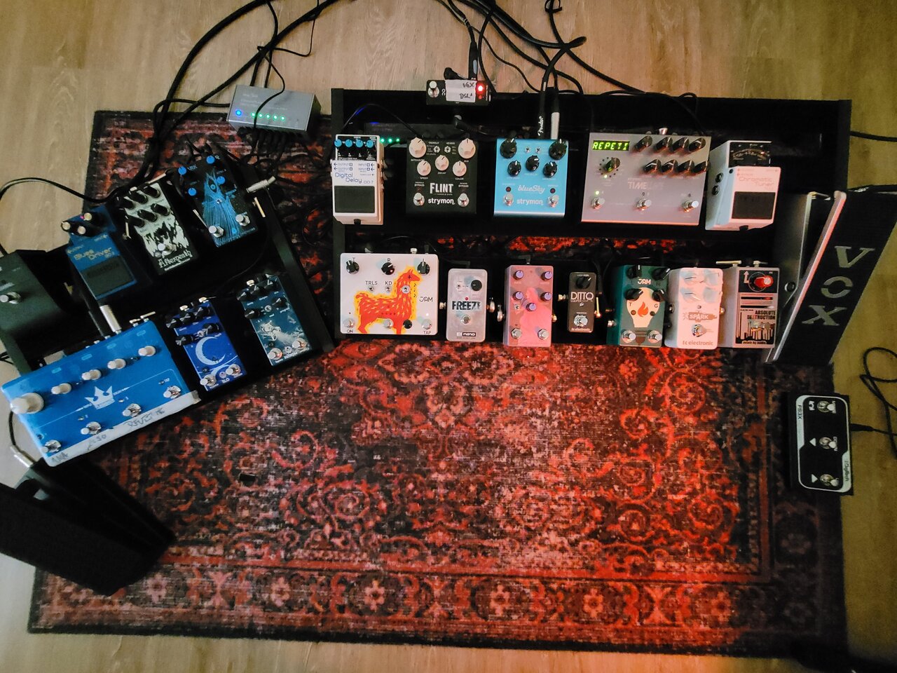 Ich widerspreche ungerne einem Forums-Mitlied (@Dark ), aber ich muss sagen, dass das Fathom unbedingt neben das Slö gehört. Um Portokosten zu sparen (hüstel), ist das Afterneath auch im Einkaufswagen gelandet. Neu ist auch der Ditto, wobei ich den etwas 'unkonventionell' einsetze; kurze Loops, die dann durch die Modulation massakriert werden. Wenn man dann noch zwei Akkorde hinzu freezt, kommt das mächtigmächtig. Dementsprechend ist das Boss Drive ans Ende der Modulation gewandert und ermöglicht herrliche Noise-Orgien. Kommt mit dem Bit Crush des DarkStar und einem Expression wirklich sehr, sehr spektakulär.