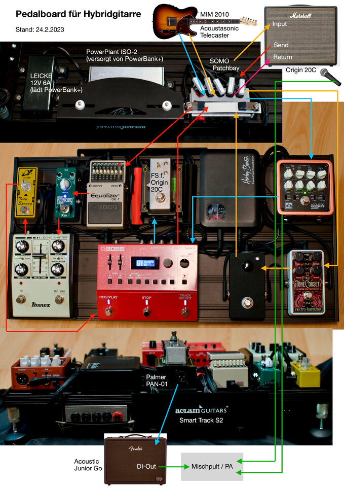 Wer sich wundert weshalb gleich zwei Compressor Pedale zum Einsatz kommen der Grund ist dieser hier: "LowCost Tube-Sag Sim" das klappt ganz gut mit dem Donner Lax Comp.