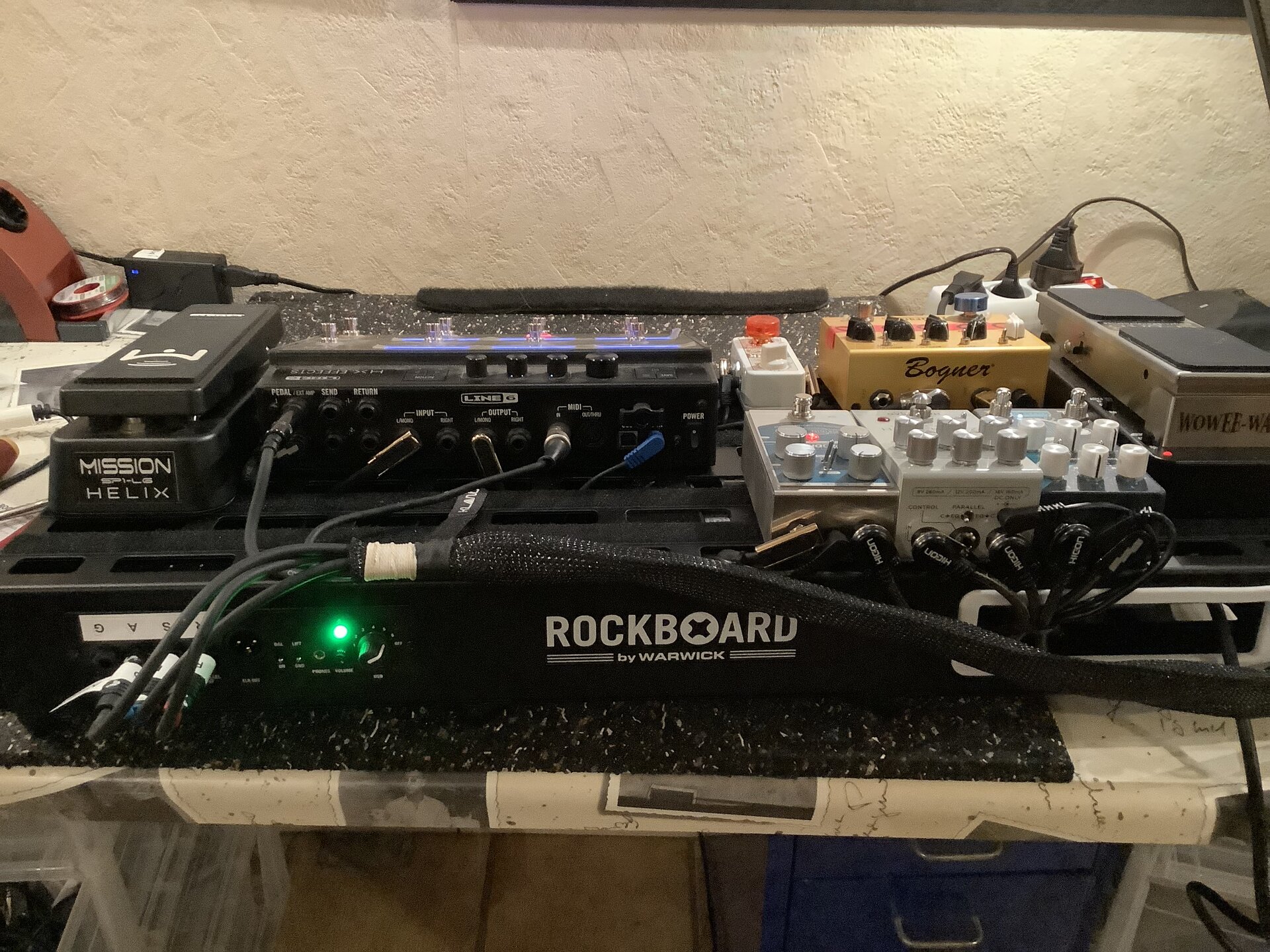 Das Board ist also quasi via 4-Kabel Methode angeschlossen. Das Helix FX ist aber ausschließlich auch im Effekt Loop meiner Verstärker und übernimmt noch Kanalumschaltung via Midi oder TRS.
