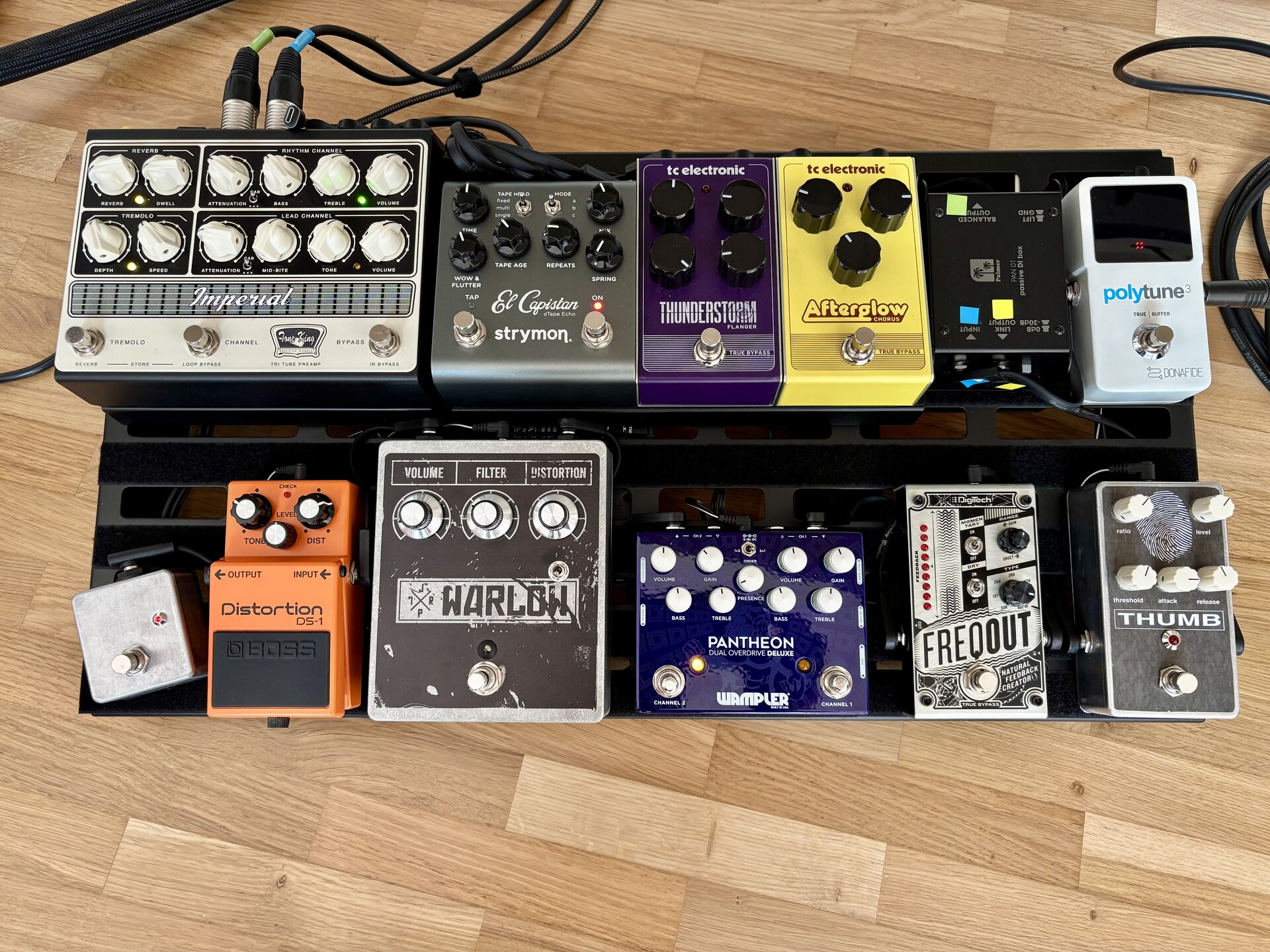 FX-Chain ist nun: ST-300 Tuner -> Foxx Tone -> Boss FZ-1w -> DCX Boost -> Phasor II -> Cali76 -> Brothers AM -> Decimate -> Amp oder Nano Cortex -> El Capistan -> Flint