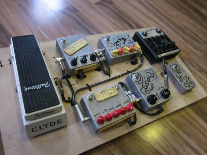 Tuner > Jam TubeDreamer+ > Blackstar HT Dual > Boss Rotary > EHX Phaser > HB Delay > Marshall Delay > T-Rex Reverb. Das alles geht dann zwecks organischem Sound in meinen Wireless-Hund und von da aus zum Amp.