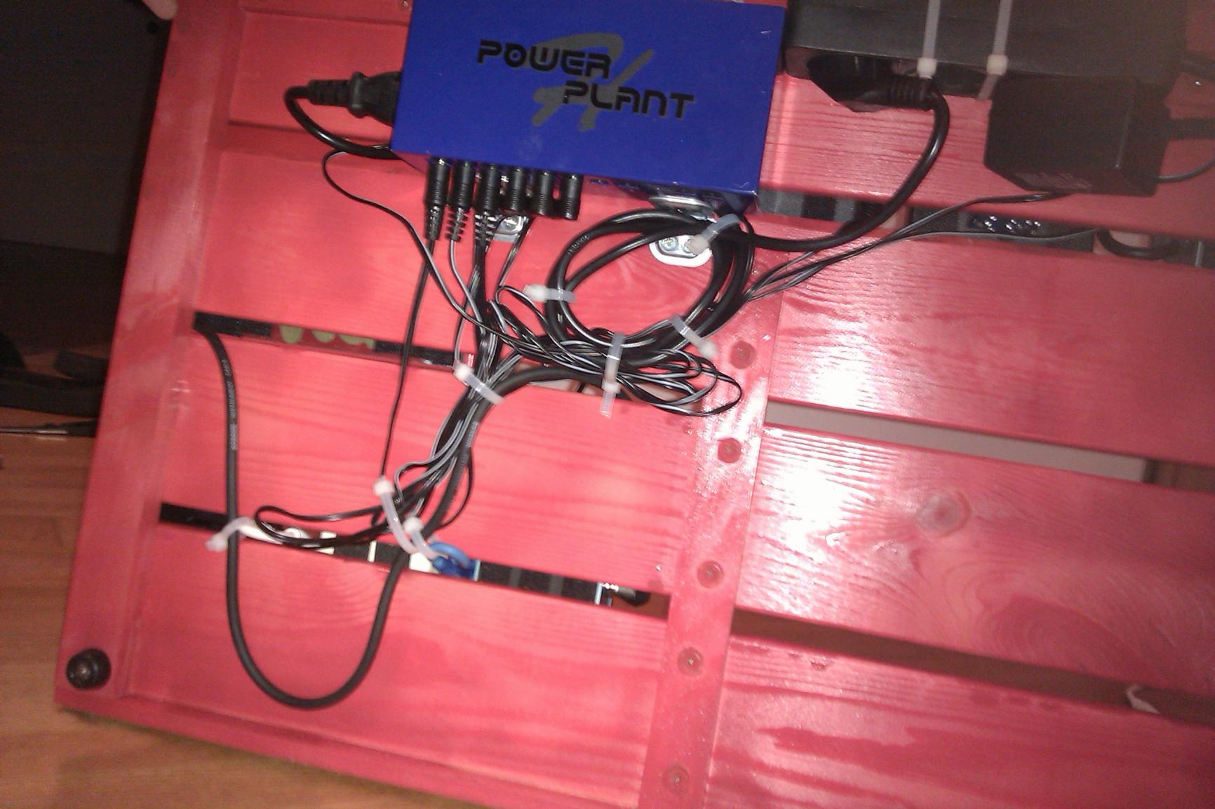 Ich habe früher mal ein Effektboard beim Casebauer anfertigen lassen (sprich nen schicken Koffer), jedoch ging es mir total aufn Sack, dass man die ganzen Kabel immer gesehen hat. Also kurzum vertickt! Da ich derzeit mein Equip eh nicht groß rumschleppe, habe ich mal hier die lustige "IKEA-Pedaltain-Anleitung" im Board in die Tat umgesetzt und das ist das Ergebnis. Bin total zufrieden und v.a. ist es eben selbst gebaut XD