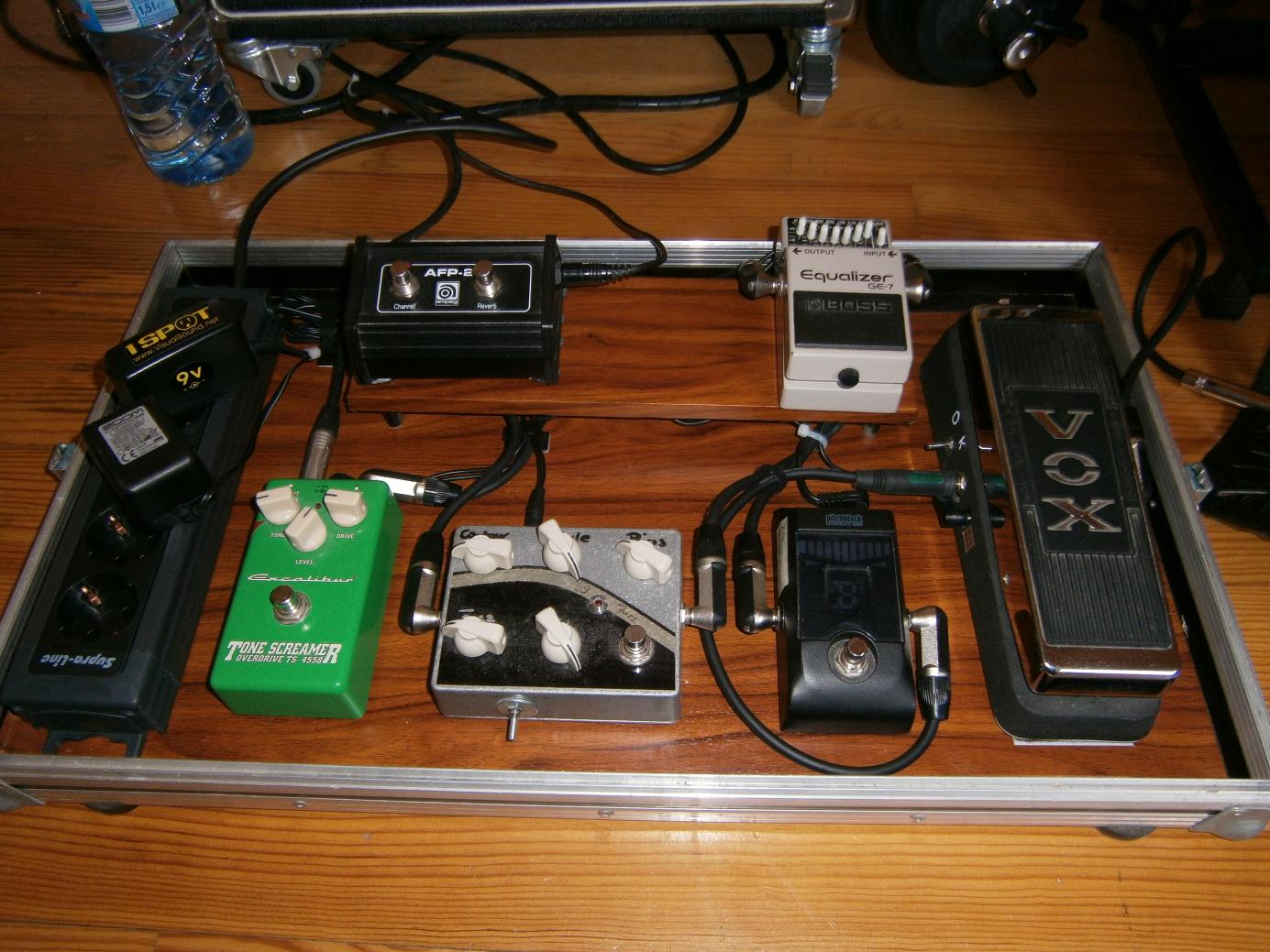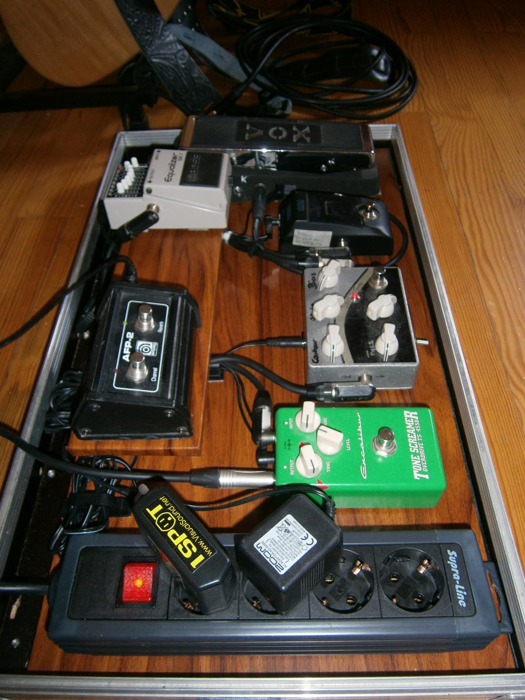 Reihenfolge ist: Wah-Tuner-EQ-Fuzz-TS. Habe das Case auf ebay geschossen und extra groß genug gewählt damit ich später noch die Möglichkeit habe meine Pedalsammlung zu erweitern.