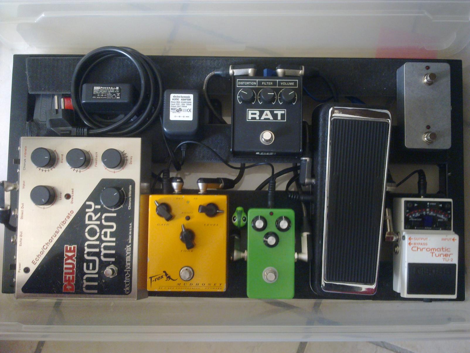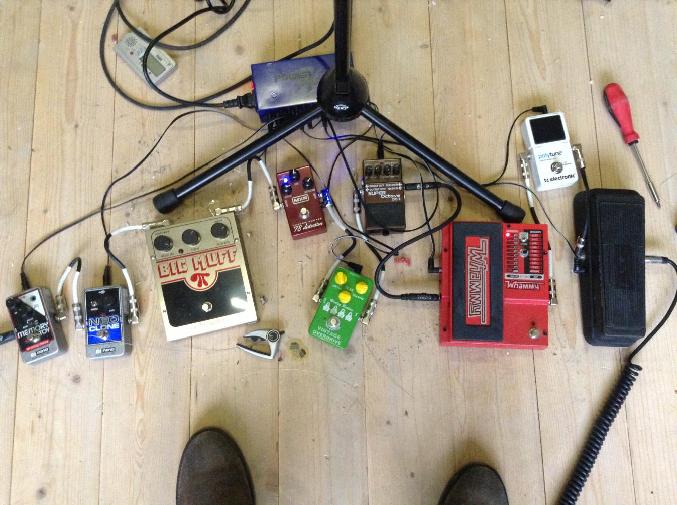 Soo ich habe mal den Rangemaster Treblebooster gegen einen klassischen Tubescreamer getauscht und die Effekte etwas anders platziert um zu gucken, wie viel Platz ich noch frei habe.