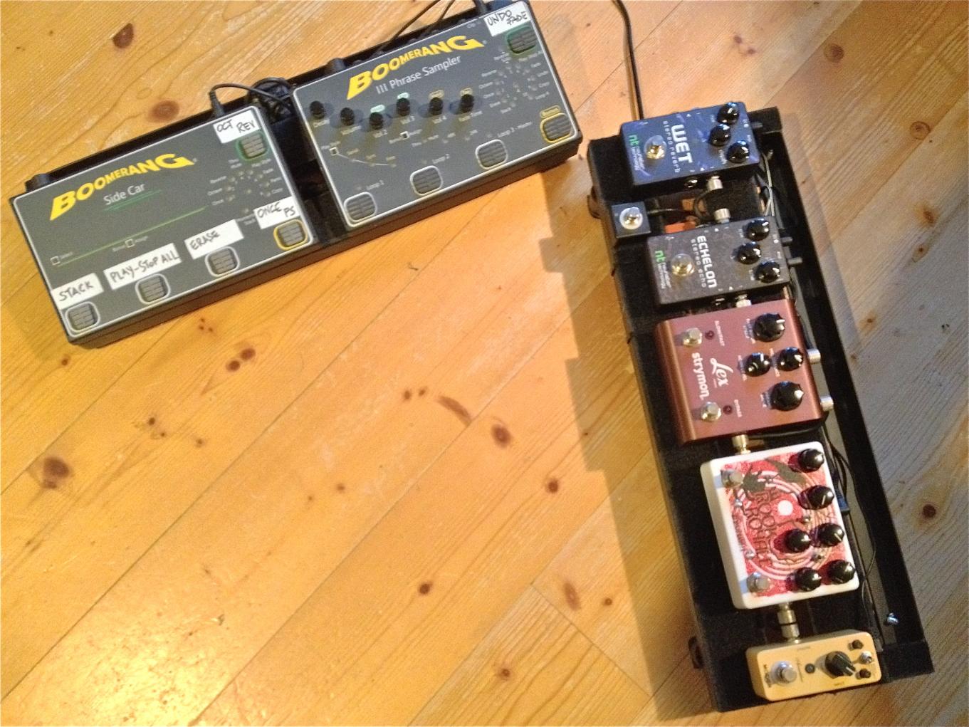 alles aufgeräumt und übersichtlich, das TC G-Major 2 hat all meine Pedale ersetzt, also brauche ich auf dem Board nur noch Tuner, Wah und Midi Footswitch.
