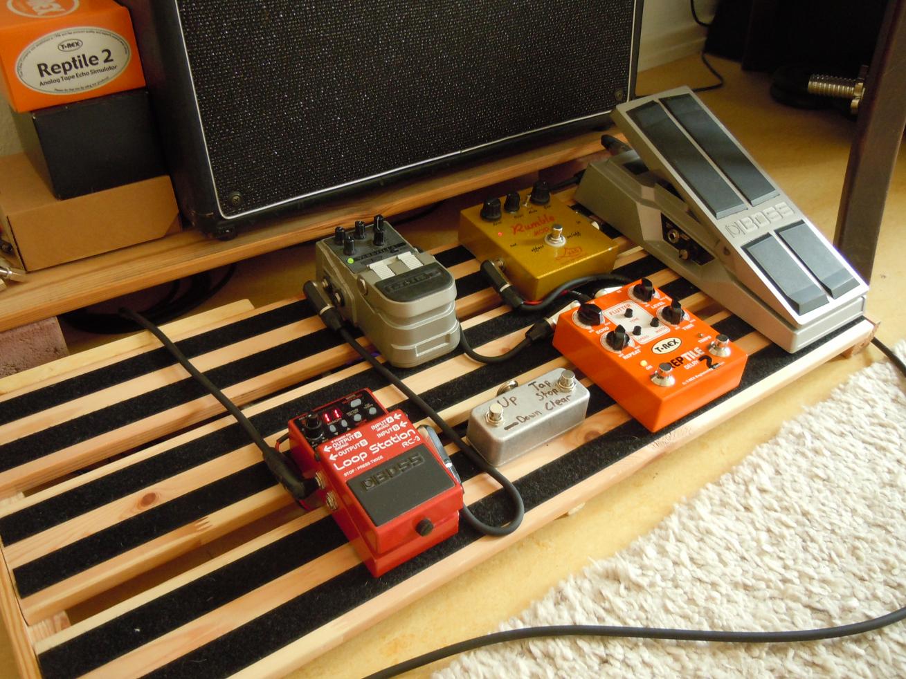 Ich bin bei meinem Board noch am Optimieren, der Platz ist allerdings fast komplett weg. Doch ein kleiner Buffer wäre noch schön und bei nunmehr 15 Effekten auch zu empfehlen. Für einen Visual Sound Pure Tone Buffer wäre allemal noch Platz.
