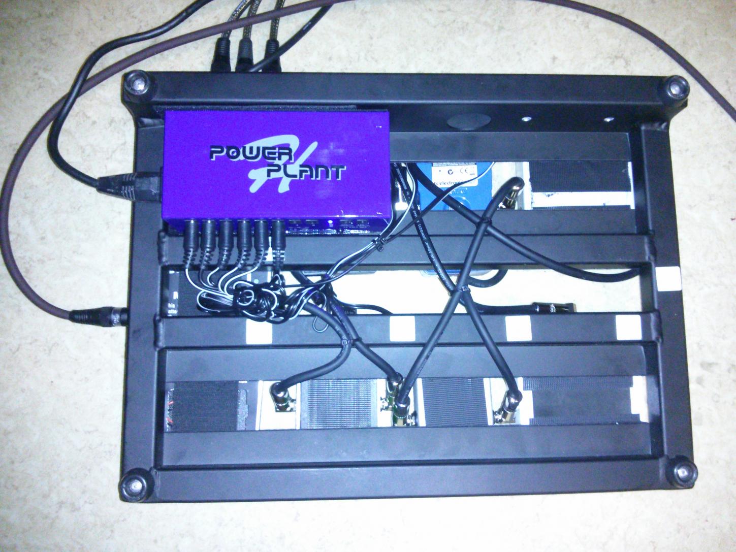 Das war meine Zusammenstellung für den gestrigen Gig (kleine Kneipe). Ich hatte ganz vergessen, wie gut dieser kleine CocaComp klingt - nach seinem Jahr auf der Ersatzbank wird er wohl doch erst mal auf dem Board bleiben. Modulationseffekte macht sonst ein TC-Novamodulator, hatte ich gestern aber keine Lust drauf