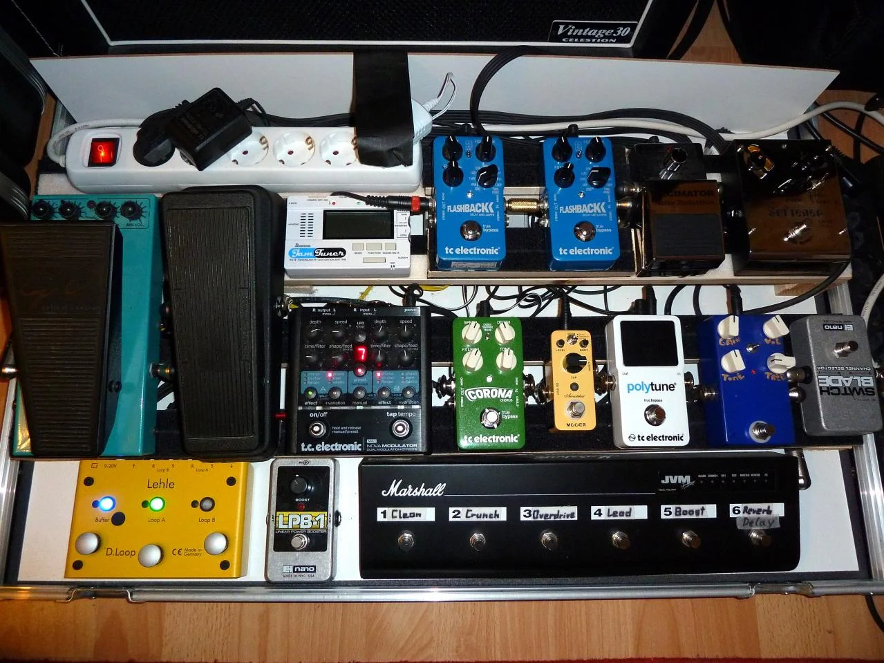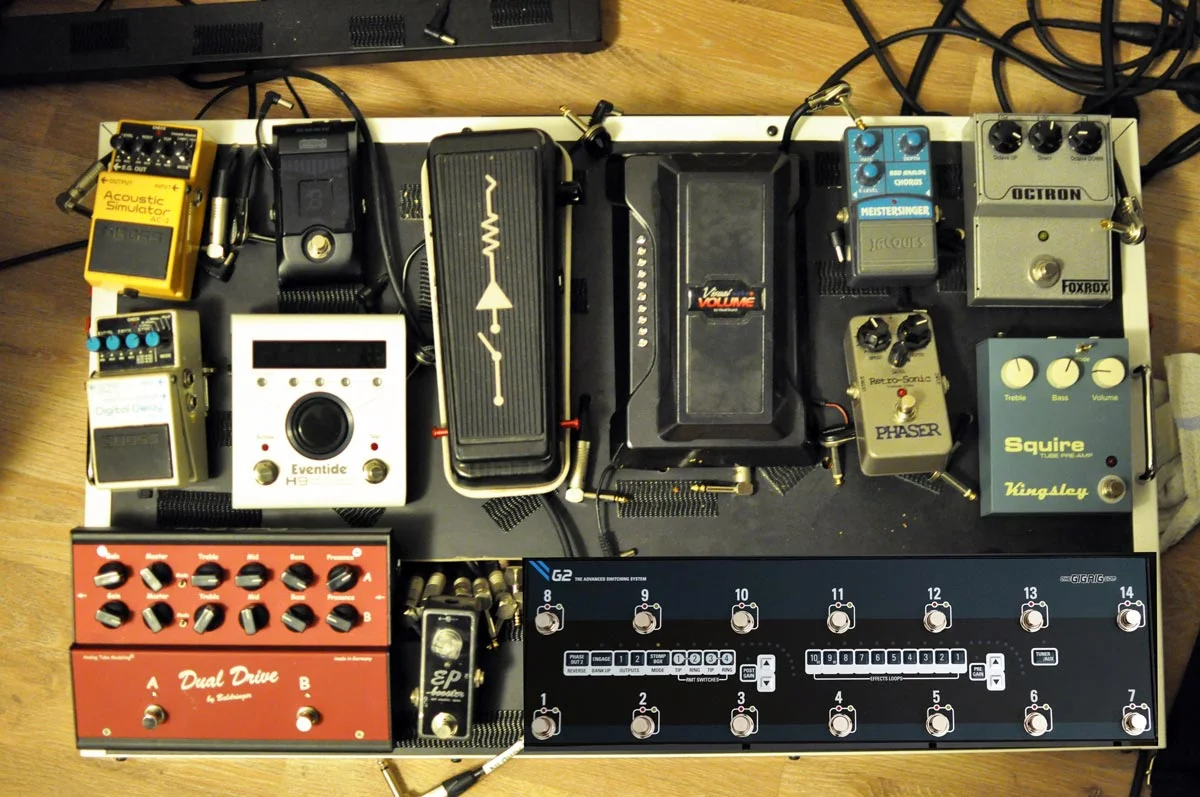 Auf dem Board ist mein Koch Pedaltone zurückgekehrt, weil das Teil absolut mit meinen Sound City 120 Custom Pa Mark 4 Amp harmonisiert. Neu ist der Big Muff, der sicherlich die einzigste Zerrtranse bleiben wird, die ich auf meinem Board habe. Der Big Muff ist zwar imho sehr speziell, aber wenn man ein wenig PF covern will unverzichtbar. Alle anderen Zerrtransen, die ich bis dato ausprobiert habe (und es waren richtig viele, von Bad Monkey, (Turbo)Rat, Tubescreamerderivaten, Boss OD1...) kommen einfach nicht an den Sound heran, den ich mit meinen Röhrenzerrern erreiche.