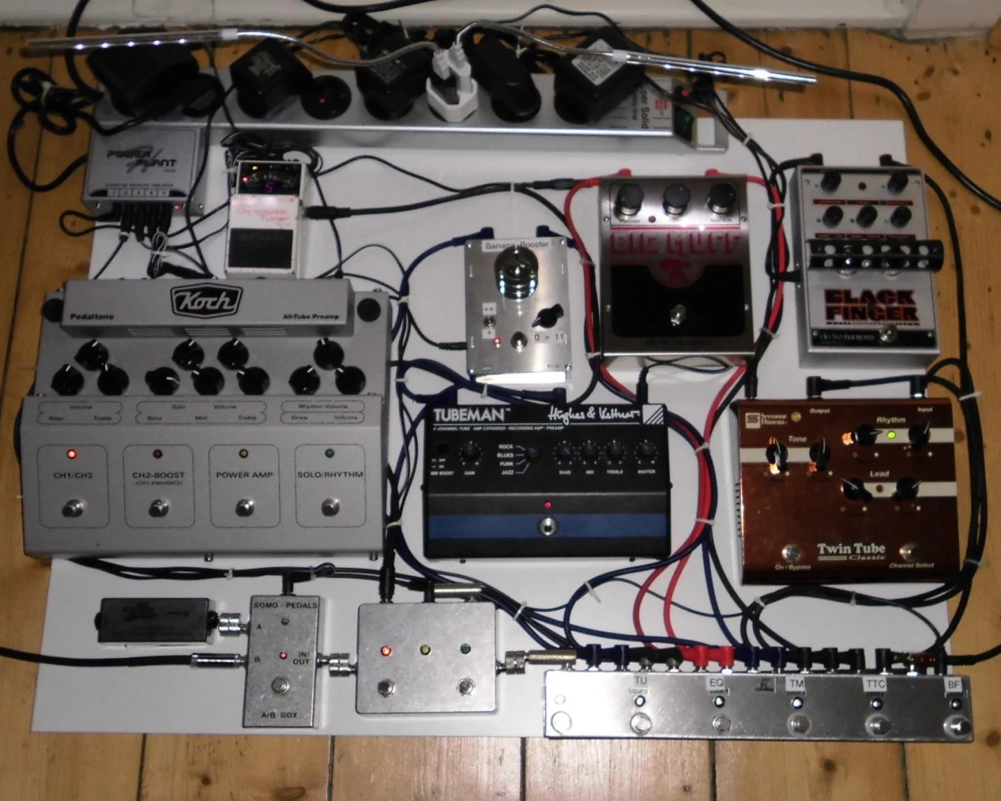 Effektreihenfolge - EHX Black Finger Compressor, Seymour Duncan Twin Tube Classic, H&K Tubeman I, EHX Big Muff, Koch Pedaltone, DIY Banana Tube Booster