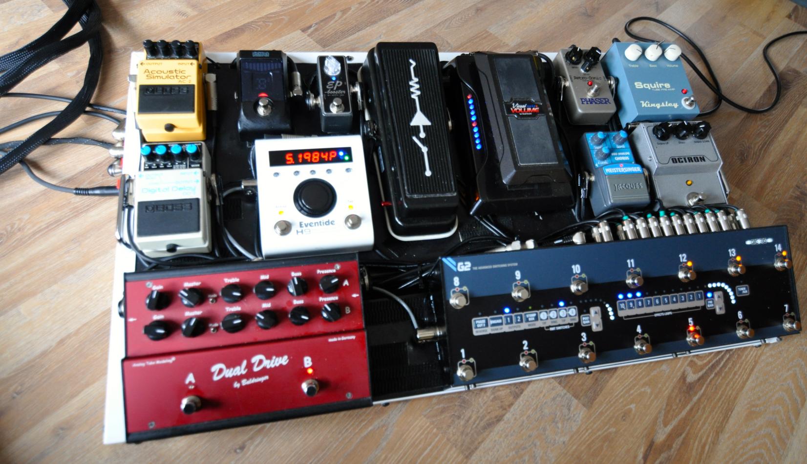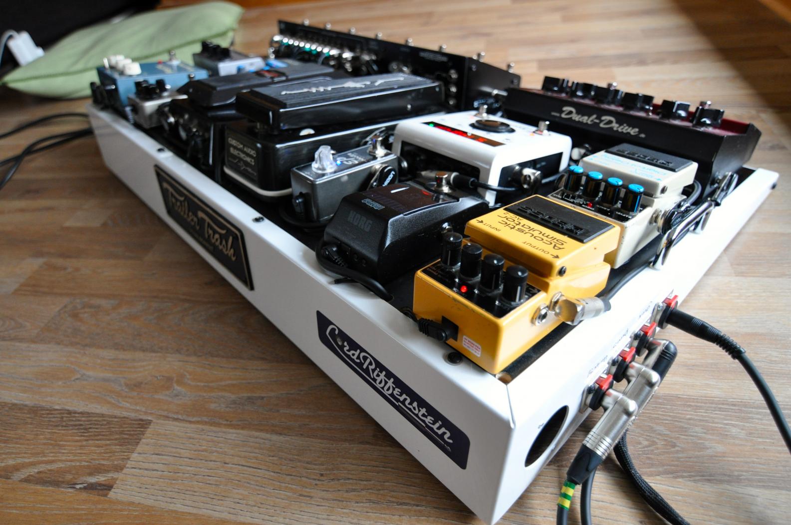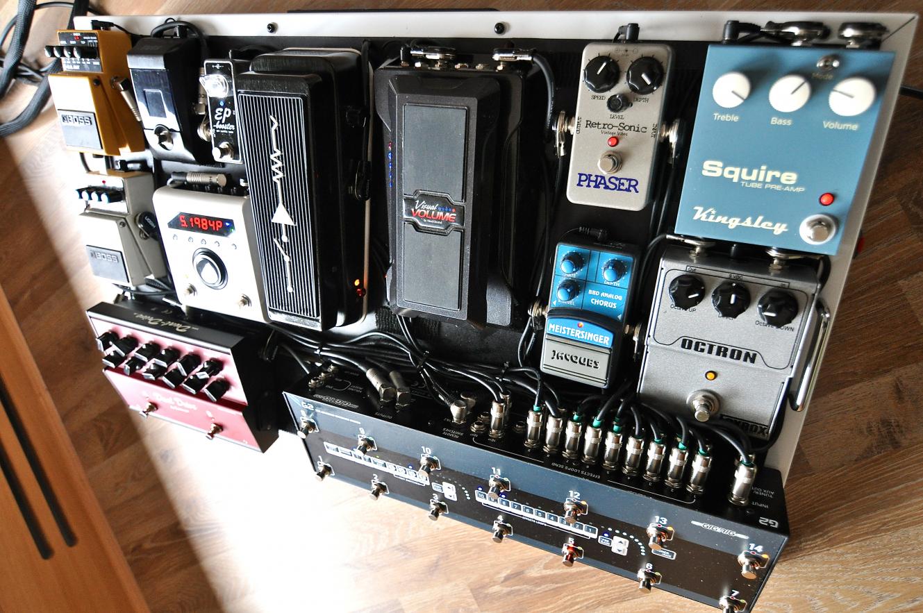 Viele Leute fragen, ob Volume und Wah "da oben" nicht nerven. Ich finde aber die Platzierung so super. Die leichte Rücklage in die man gerät, wenn das Wah etwas höher sitzt ist sehr cool beim Solieren.
