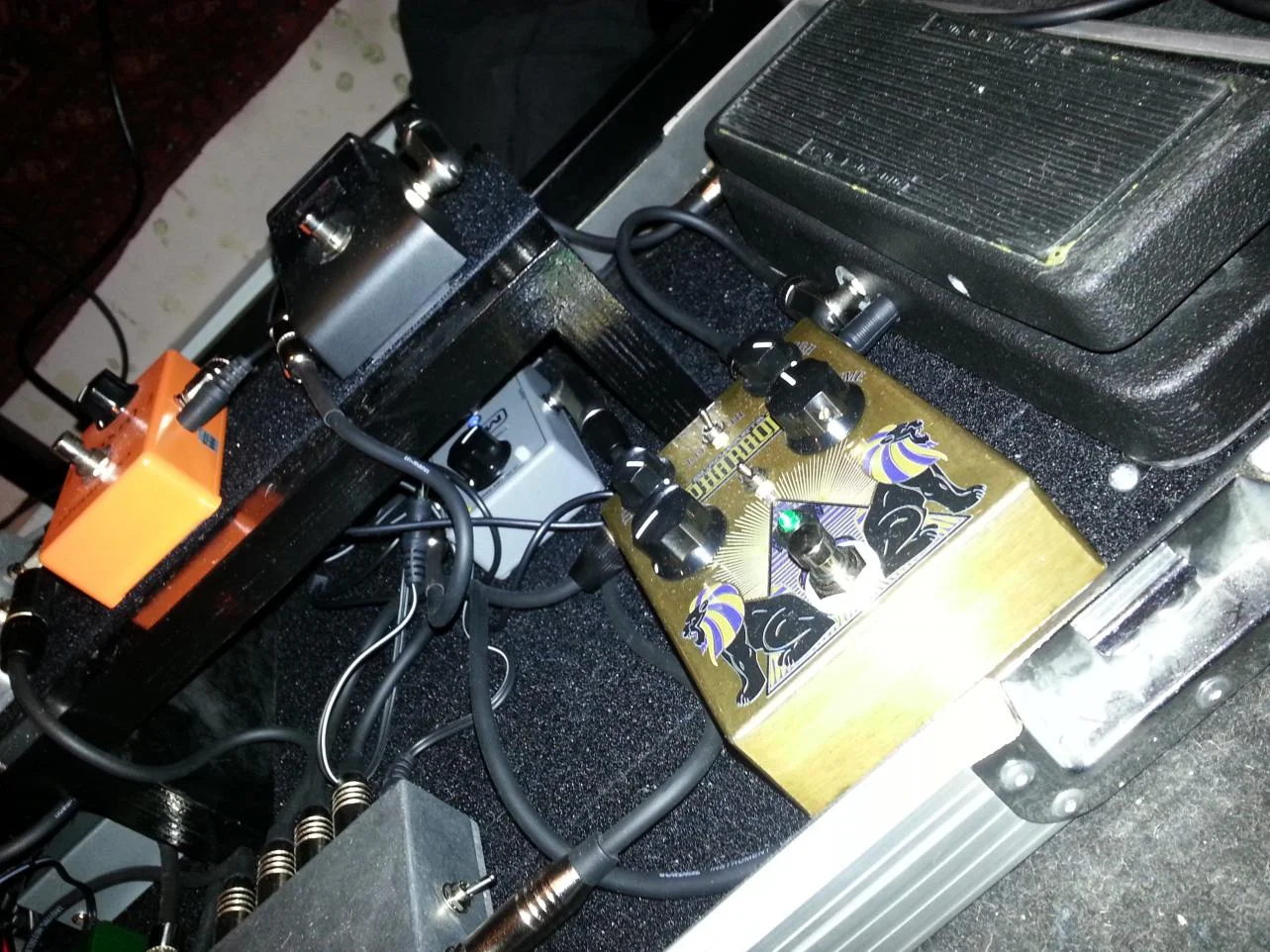 Ibanez SC10, welches ich mal hatte, aber das boostete das Signal, wenn man ihn trat) und viele Flanger waren mir zu jaulig. Der Electric Mistress hat beides, aber unauffällig und in bester Qualität mischbar - herrlich. In ihn geht es mono rein und von da aus nun stereo weiter.