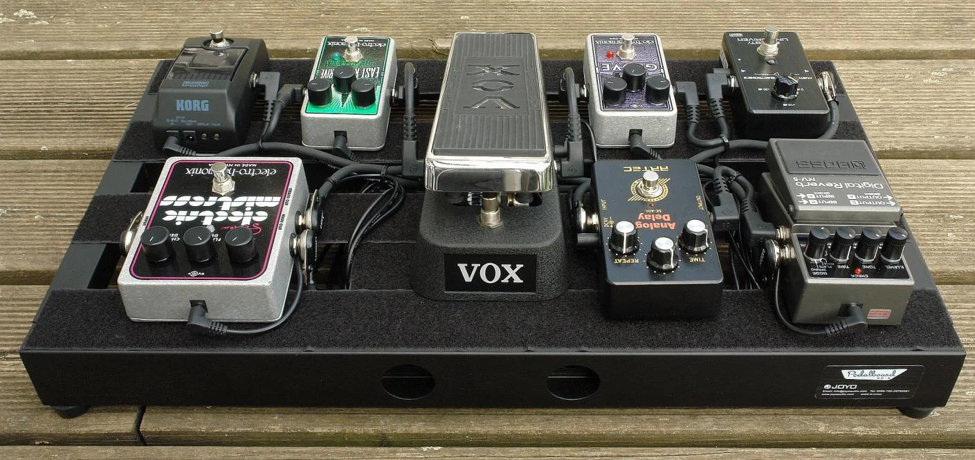 Board: Joyo RD-B für 39,-. Power: Joyo JP-02 für ca. 50,-. 8x 9V, 1x 12V, 1x 18V. Befestigt unter dem Board. Es wird mit einem Netzteil befeuert, welches 18 Volt Gleichspannung liefert.