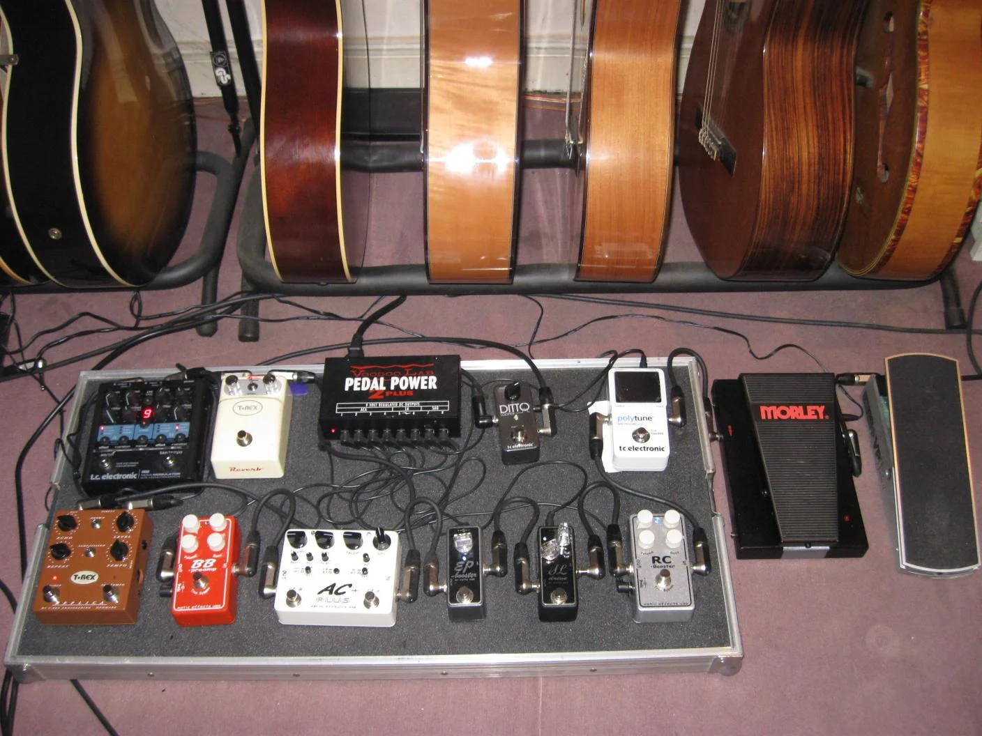 das erleichtert das durchsteppen. Als Wahwah benutze ich wahlweise mein altes Bad Horsie von Morley oder ein CryBaby.
