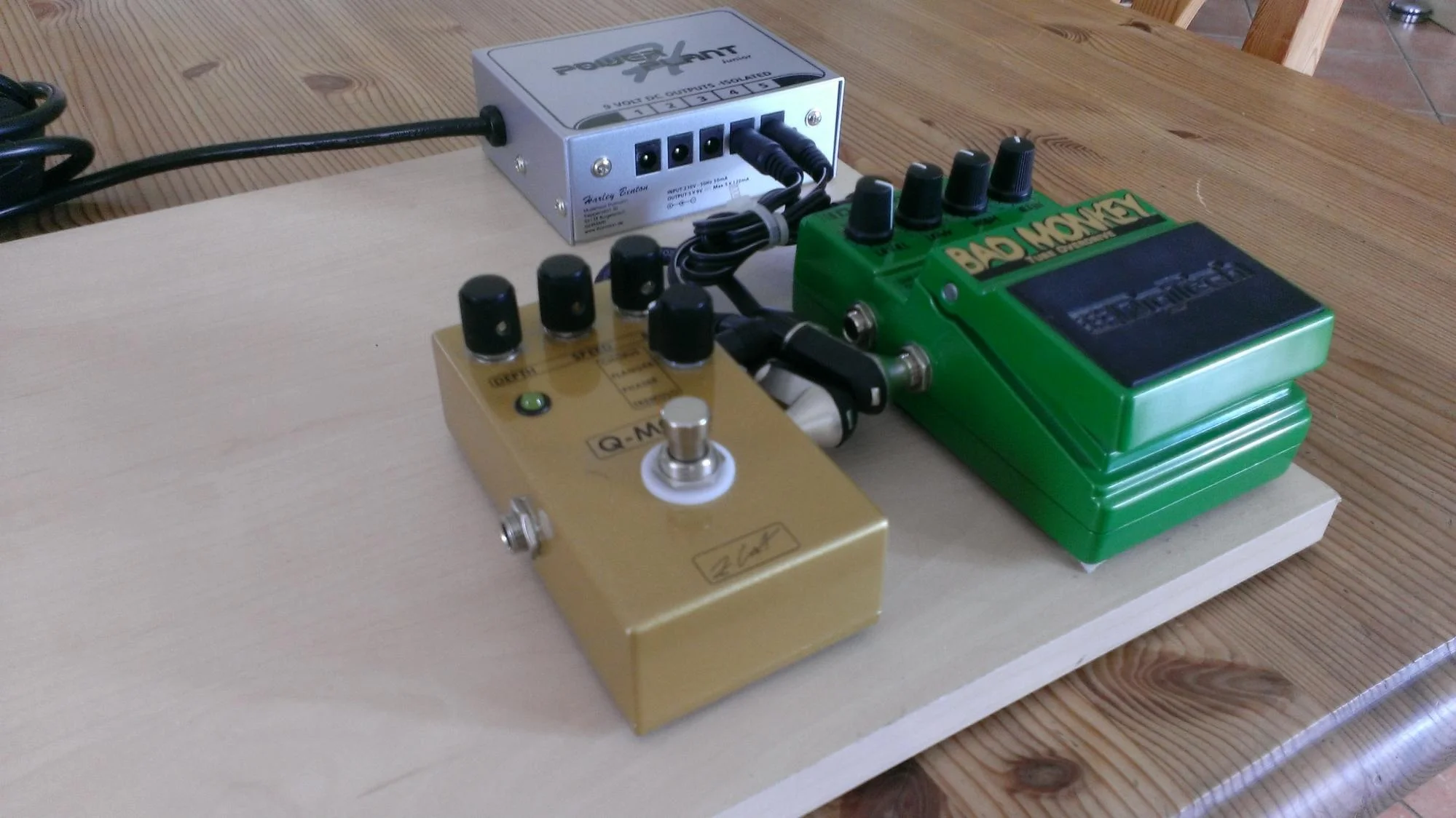 Dankeschön! Richtig, das blaue ist die Blue Box, das andere ist eine selbstgebaute Fuzz Factory. Der Triangle Fuzz gefällt mir an sich schon, aber das ist ein Sound, den ich nur ganz selten brauche, das meiste decke ich bereits mit der Fuzz Factory ab.@DasRofl: Schönes Board, gefällt mir.