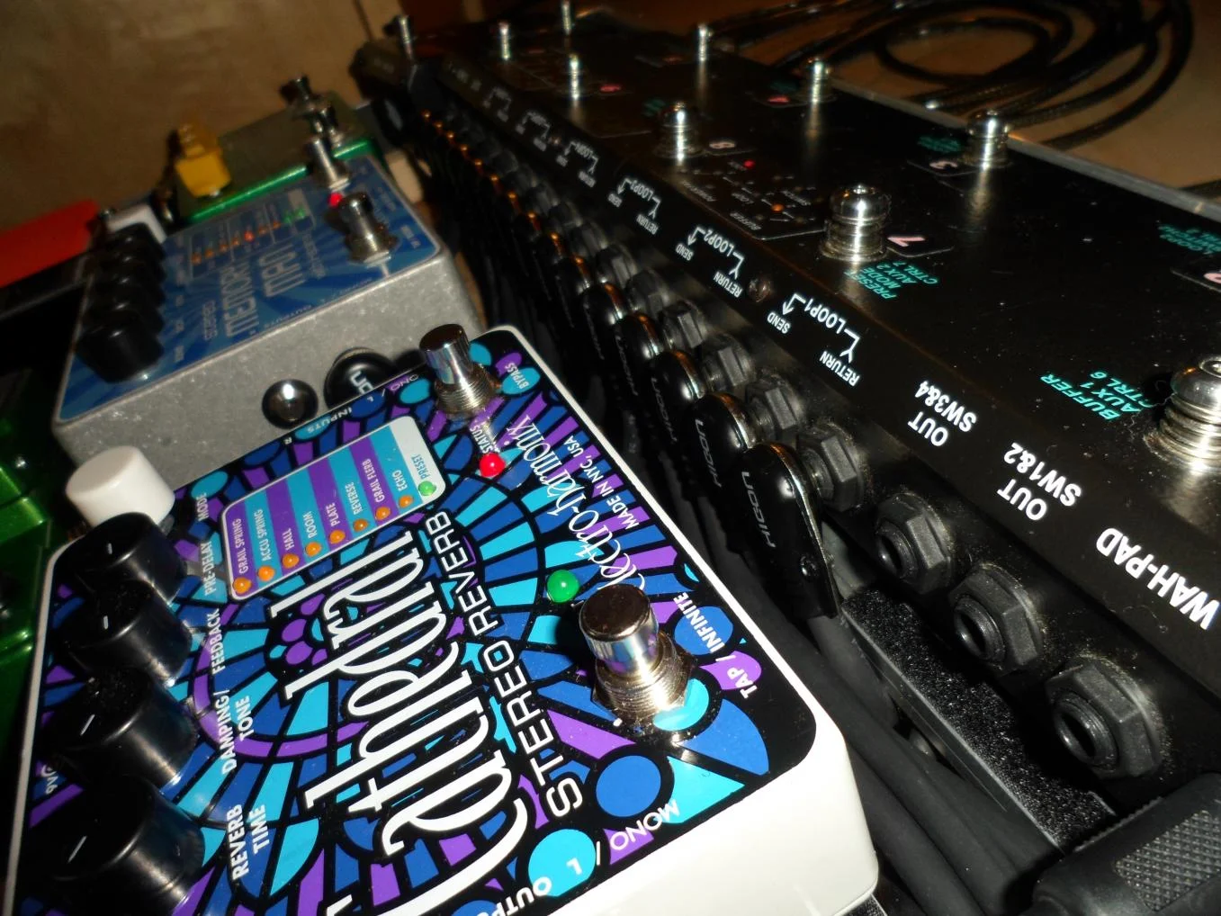😉 Sinn dahinter war das man mit einem Schalter (Dem True Bypass Looper) die komplette Effektkette im effects loop des Verstärker umgehen kann, da dieser dafür keinen eingebauten Schalter hat. So kann wolf mit aller Ruhe die gewünschten Effekte vorher ein oder ausschalten und dann mit einem einzigen Schalter die Effektkette wieder aktivieren. Ist eine einfache Komfortsache.