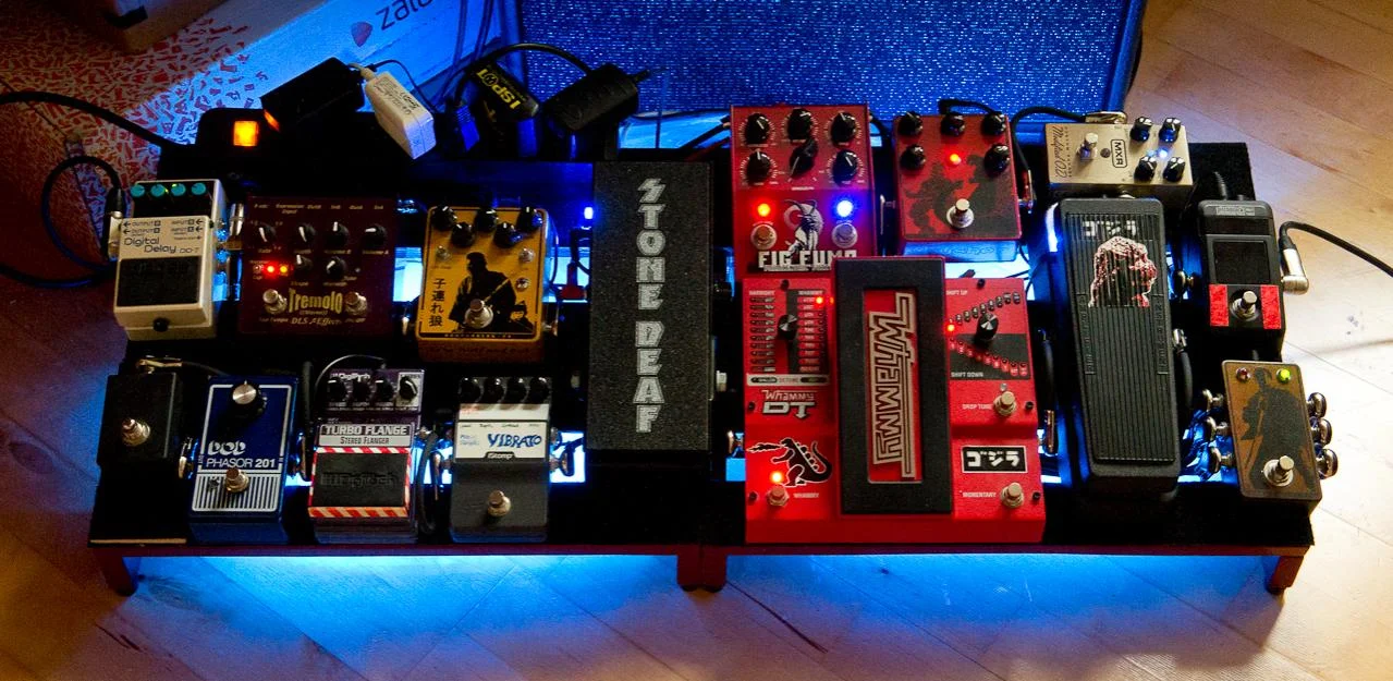 über und unter den Pedalen immer noch so viel Platz war, der aber gerade nicht ausgereicht hat, um noch mehr Pedale unter zu bekommen, hab ich mir jetzt auch ein Pedaltrain gegönnt. Das 3er, um genau zu sein.