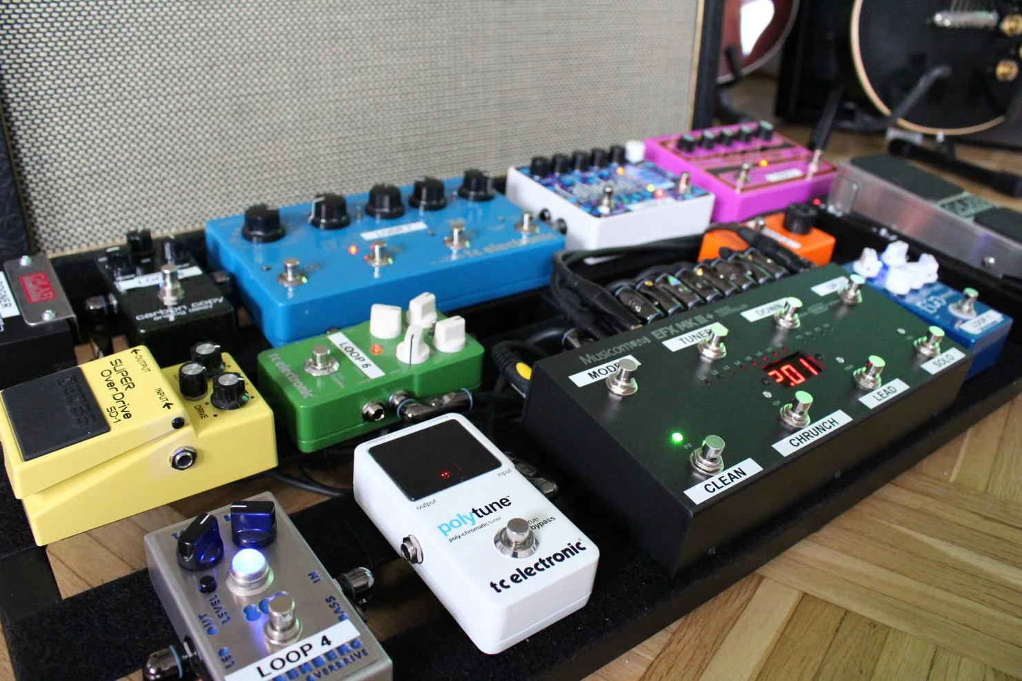mit den Straussen und in Verbindung mit meinem Amp hab ich einfach das Gefühl, endlich angekommen zu sein. Und das beste dran ist: durch den Equalizer kann ich mit dem Board in jeden Amp und kann die Sounds so anpassen dass ich mich gleich wohl fühle. Ich habe das Board mittlerweile über 8 oder 9 Amps gespielt und hab es noch nie geschafft, nen schlechten Sound hinzubekommen