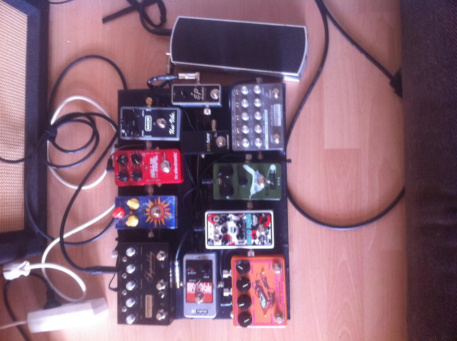 Also da will ich mal versuchen, ob ich helfen kann. Also deine zweite Frage verstehe ich nicht ganz: Der Sinn von einem Looper ist ja, alles was nicht gebraucht wird, aus der Kette zu nehmen. Wenn du den Buffer also in einen Loop hängst, läuft das Signal nicht durch, wenn der entsprechende Loop nicht aktiviert ist. Es wäre aber denkbar, dass du den Buffer in den ersten Loop des Loopers hängst, und ebendiesen immer mit an hast, außer in Kombination mit einem Fuzz. Wenn du den Buffer vor den Looper hängst, geht das Signal natürlich immer durch. (so mache ichs, habe aber auch kein Fuzz)