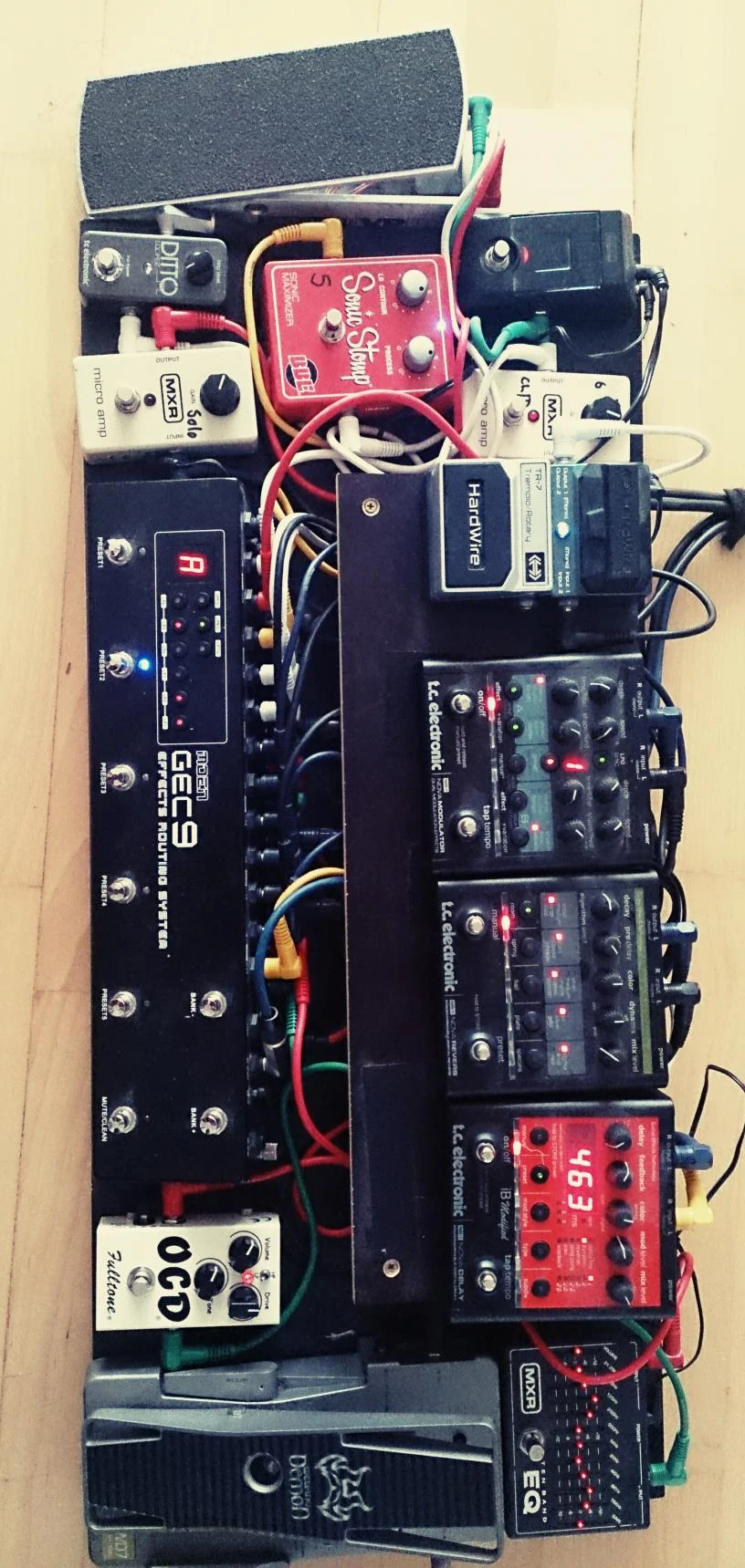 Ansonsten eine im Lauf der Zeit erprobte Mischung von Marken- und Billigpedalen. Mit meinen Jet City - Amps klingt das so, wie ich es mir vorstelle.