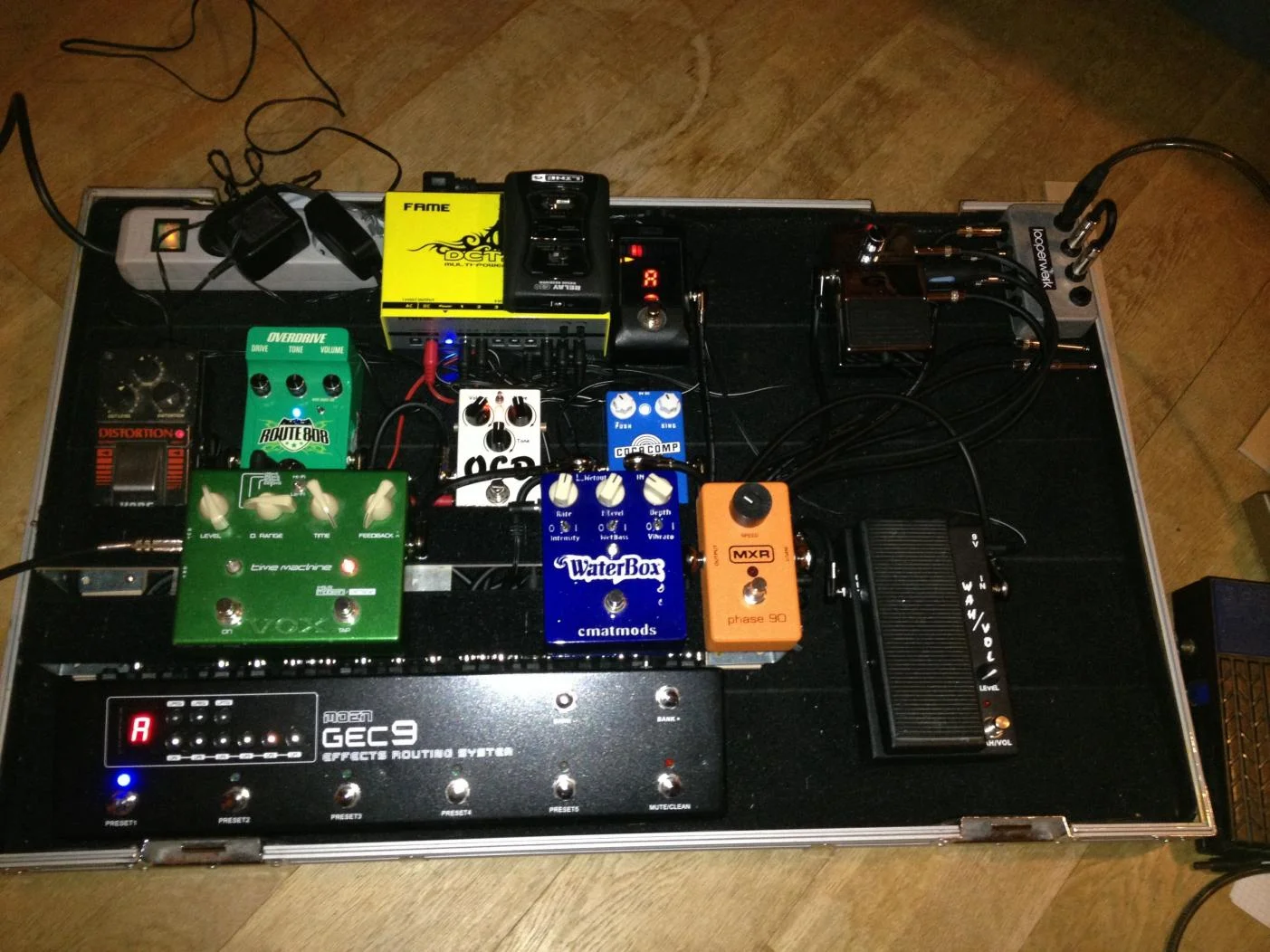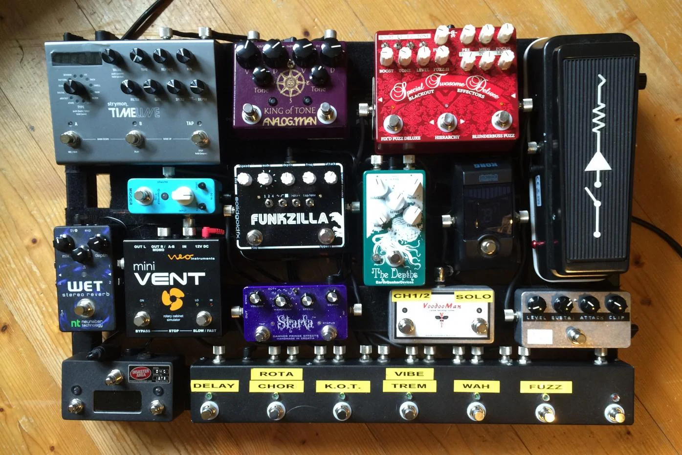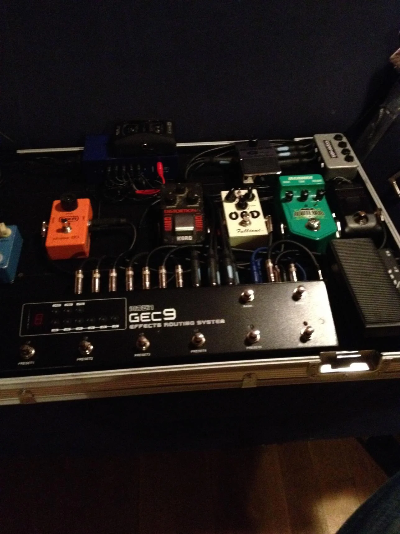 - Das Delay steht auf einer kleinen Erhöhung, das werde ich beim Tuner auch noch machen, damit ich nicht auf die Knöpfe des POGs trete.