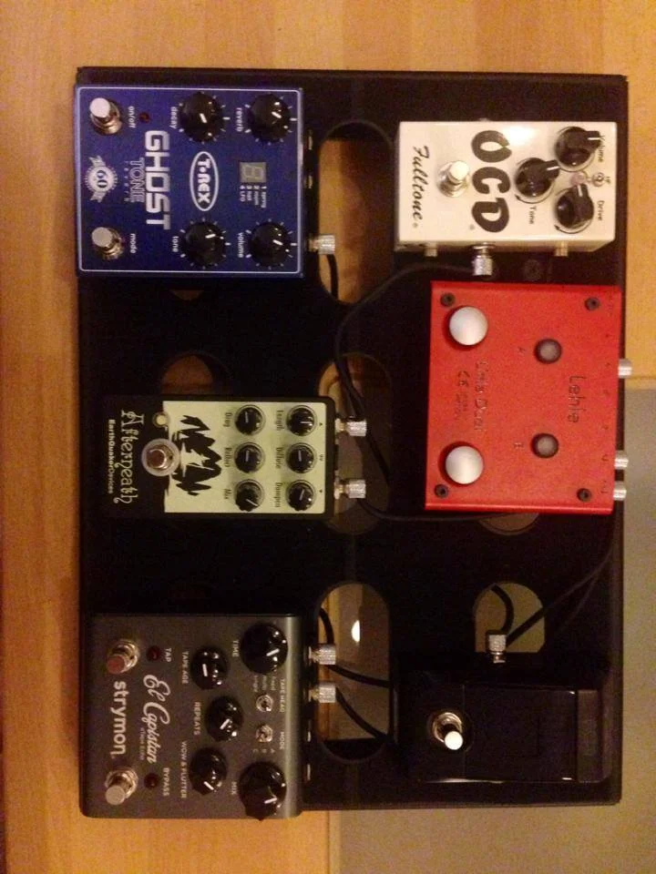 Hier mal mein aktuelles Board. Alles mit dem Lava Solderless Kit bestückt. Strymon Favourite fehlt auch dem Foto noch.