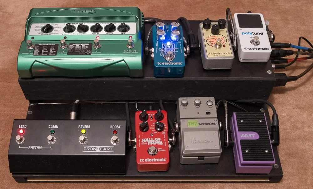 Gute Pedalauswahl und vorbildliche Durchführung! Gefällt mir sehr gut! Ich frag mich nur, wieso du 2 TS-artige Pedals als Drive drauf hast, oder irre ich mich da? Der Ironheart wird ja sicherlich schon genug Zunder geben 🙂. Mir würde entweder nochn Fuzz oder nen Booster fehlen, aber ansonsten voll tauglich!