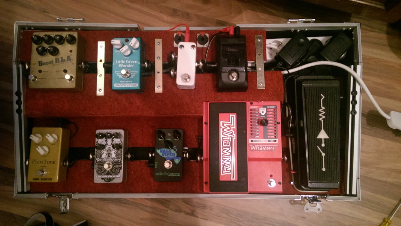 Die Signalkette ist: Line6 Relay G30 - Ohmless Yara Compressor - Paul Cochrane Timmy - Ernie Ball VP JR mit Buffer Mod - (TC Electronic Polytune Mini noir) - Strymon Timeline - Strymon BlueSky - TC Electronic Ditto X2