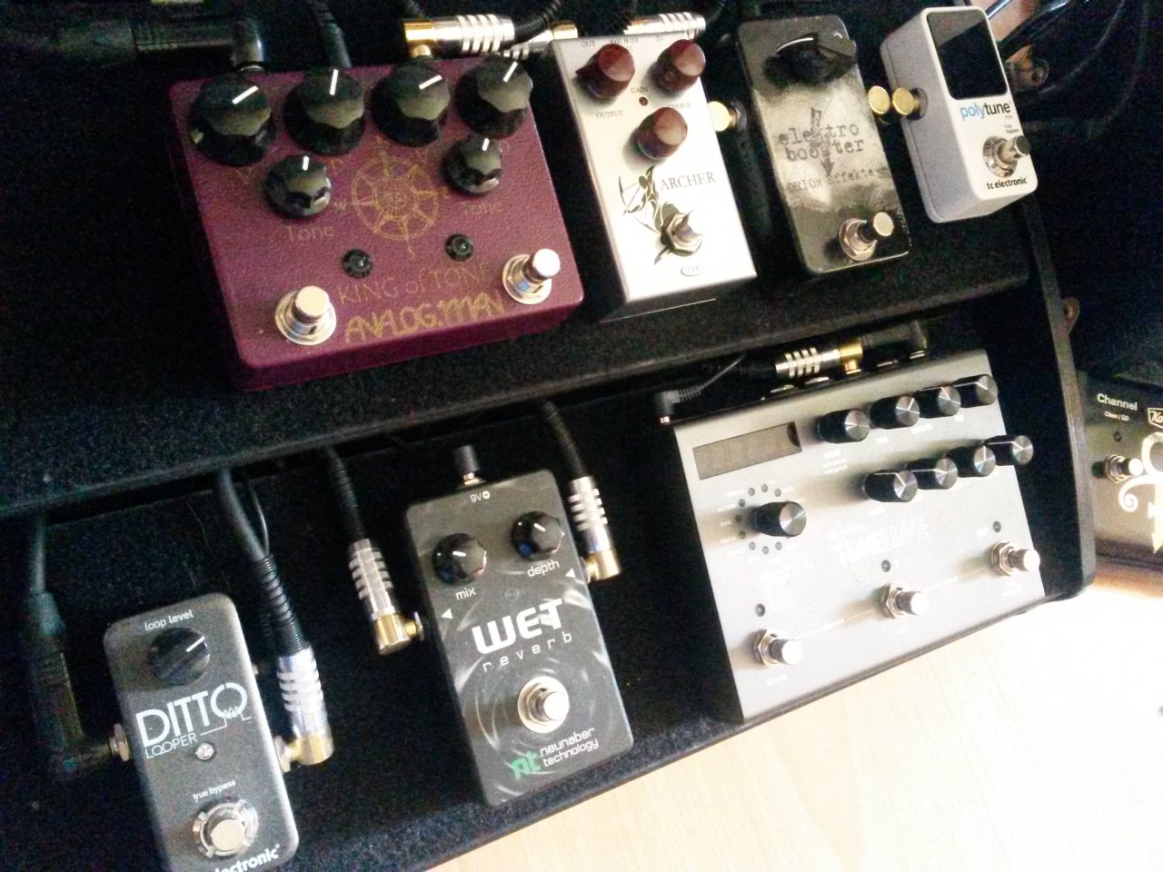 Korg Tuner - Bad Monkey - Joyo US Dream - Marshall Echohead - EHX Small Clone und dann direkt in den AMP.