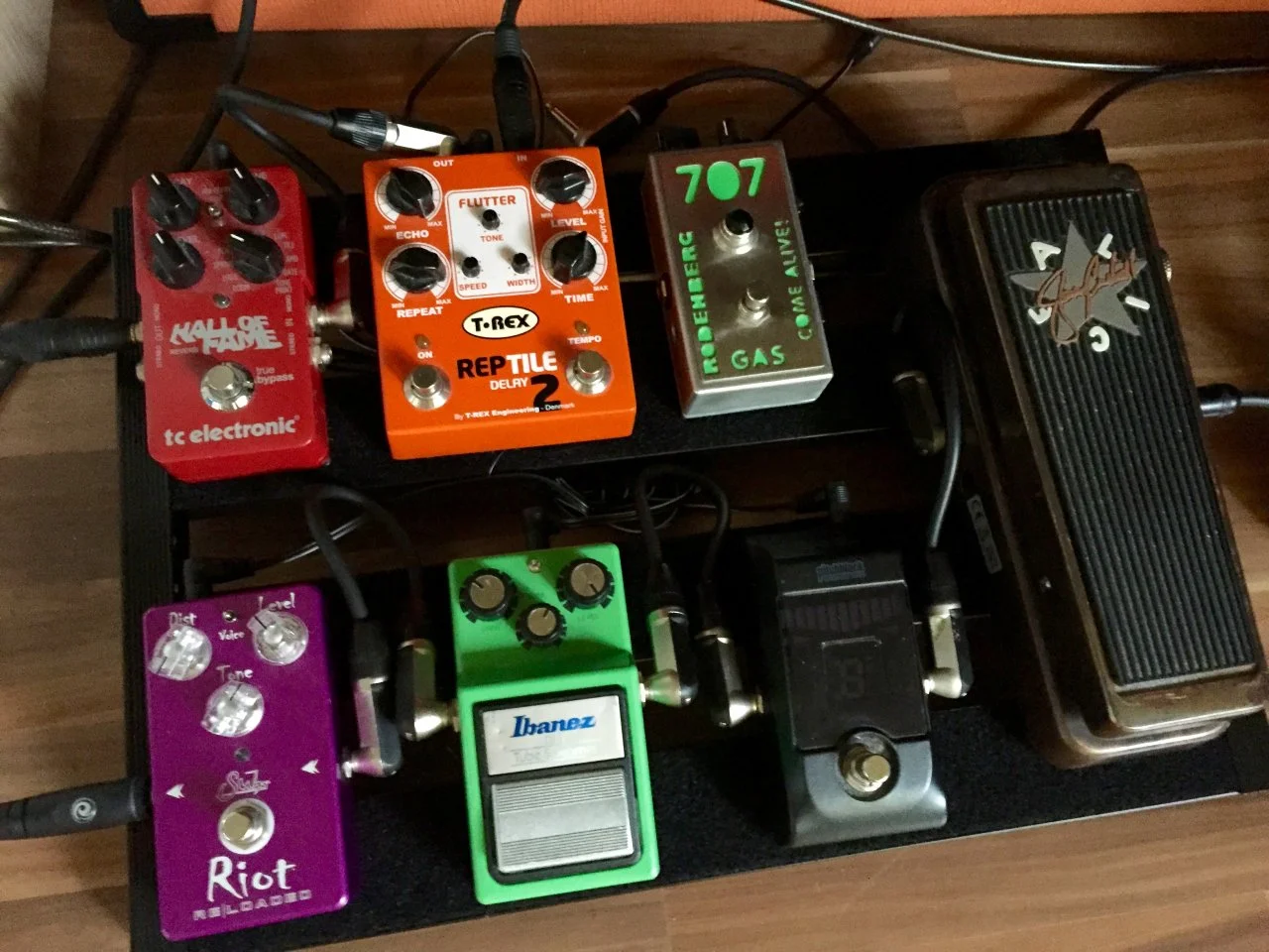 kurze Zeit später der Umstieg auf ein Pedaltrain Mini und der Rodenberg als Solo Volume Boost kam neu dazu. Modulation nutze ich eigentlich nie...Das Board war auch so länger im Live-Einsatz.