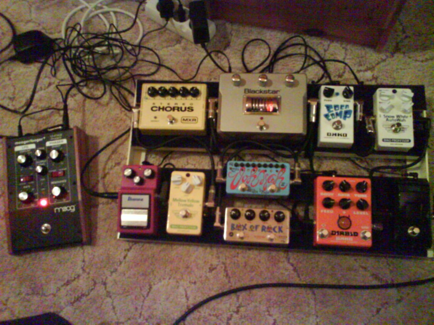 also die delays klingen nicht grad sauber, eher mittig/analog. der dfc-10 auch. der spar auf meinem recht kleinen board platz, da ich beide effekte immer getrennt, nie zusammen betreibe. der chorus unterscheidet sich in dieser hinsicht stark vom boss-pedal. es klingt deutlich mittig/hohl und irgendwie flach aber mit schönen höhen, vorteil: der sound verwäscht nicht mit zu vielen bässen.
