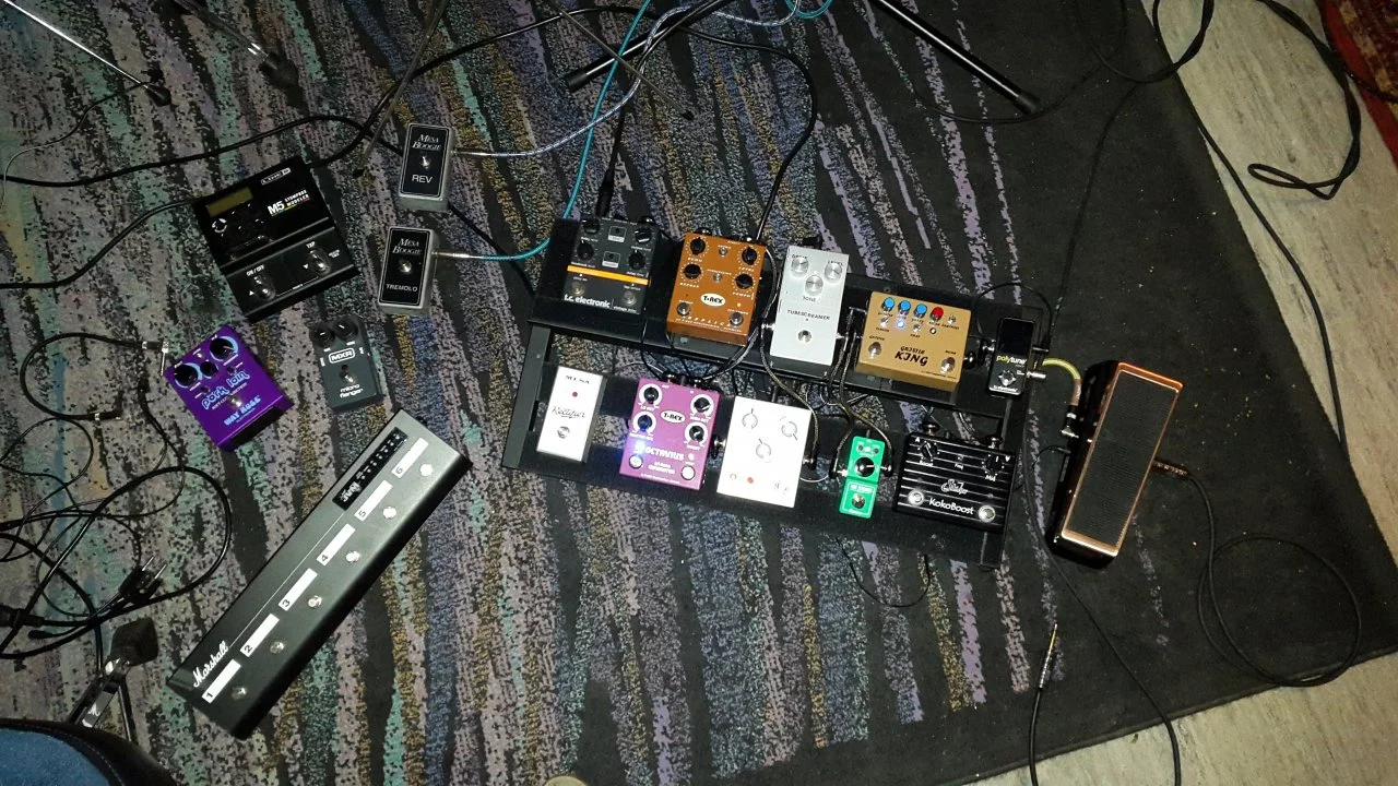 Telecaster - Photo Theremin - Line 6 M5 - Mak Octronix - Tube Screamer - OCD - Subdecay Quasar Quantum - Boss CH-1 - Malekko Ekko 616 - Volume Box - Fender Hot Rod III.