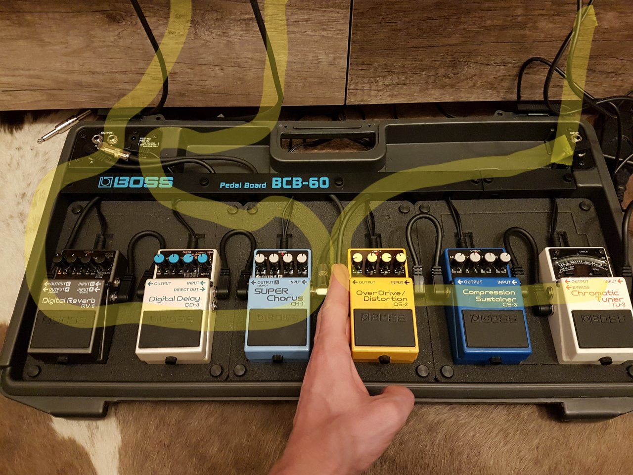 Ganz am Anfang der Kette sollten Tuner, Kompressor und Overdrive kommen, auch in dieser Reihenfolge (zumindest standardmäßig