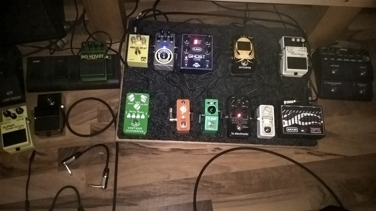 Ah, okay, danke für die Antwort.Das Noisegate am Ende ist gut, um alle Geräusche wegzubekommen, vor allem auch laut rauschende Pedal. Es klappt dann aber nur für eine Einstellung richtig, bei leisem Clean Sound kam bei mir nichts mehr durch, wenn es für High Gain Distortion eingestellt war. Ich hätte es dauernd an und aus schalten müssen. Am Anfang macht es nur die Nebengeräusche von der Gitarre weg, aber auf die kam es mir an, da sie von den Pedalen stark verstärkt wurden. Dafür kann es jetzt permanent an sein. Ideal ist ein Noisegate mit Send-Return Schleife, wie Kluson es hat, das kombiniert beides.