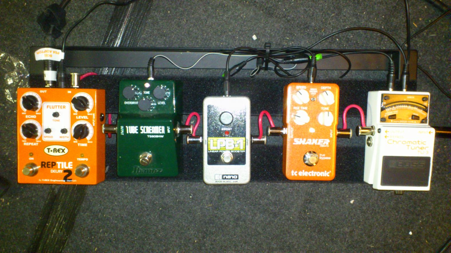 Der TS war mir zu schade, um ihn als Booster zu nutzen, so brauchte ich schnell Ersatz und hab mir den LPB-1 ausgeliehen. Der ist aber echt mies, wie ich finde und klaut den Ton, wo er nur kann. Da muss noch was Anderes her. Sonst ist ja schon kaum noch Platz, einen kleinen A/B Switch hätte ich noch gerne.